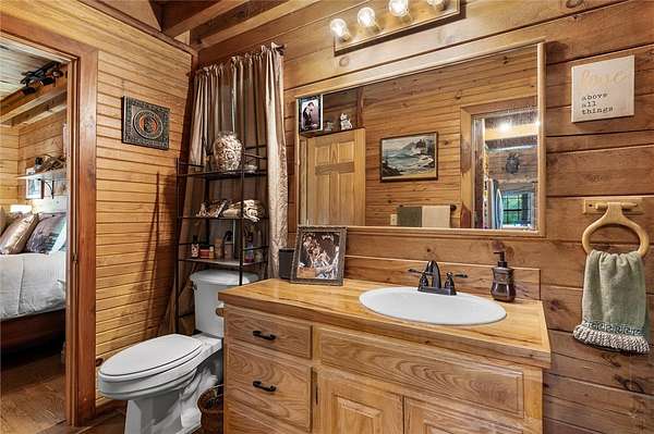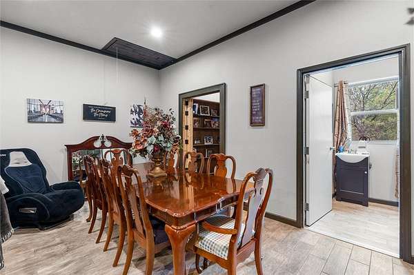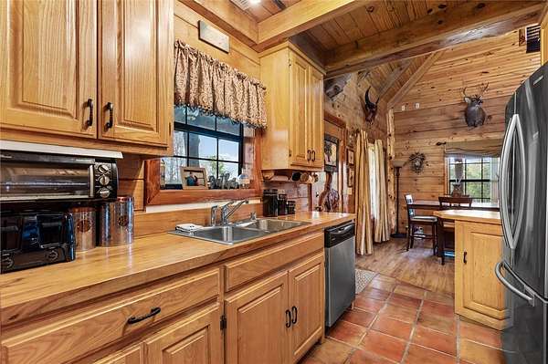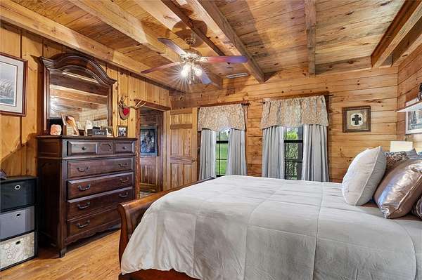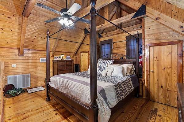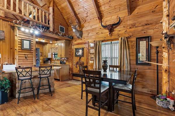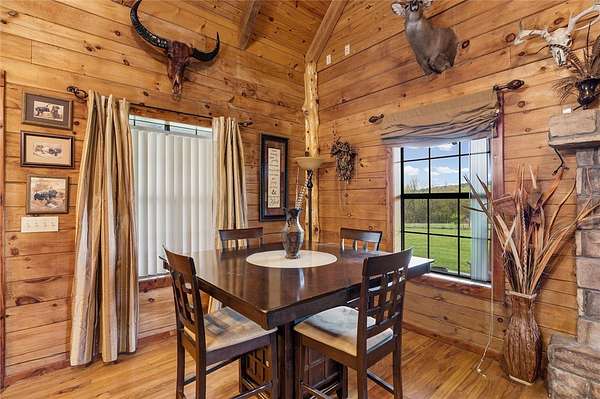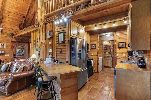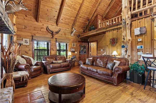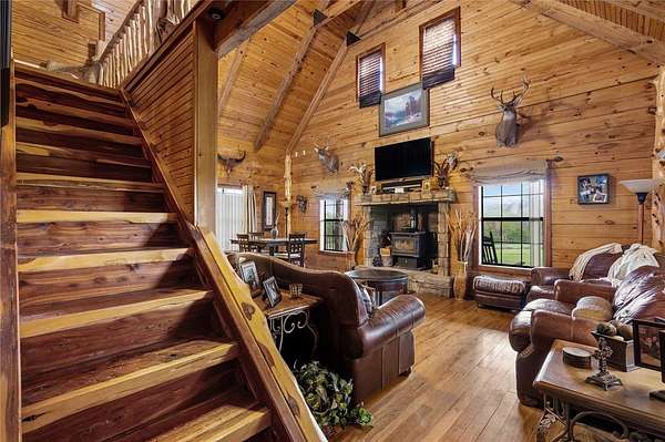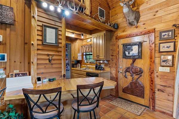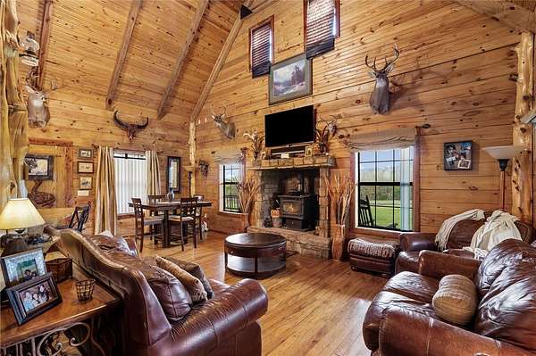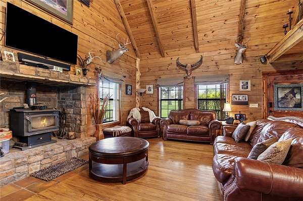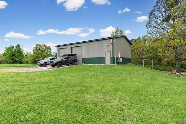 Escape to the Ozarks with this unique 18.7-acre retreat in scenic Madison County, just 30 miles from Rogers, 16 from Eureka Springs, and 12 from Huntsville. Nestled in a private, peaceful setting, it blends rustic charm, recreation, and self-sufficiency. The 960 sq ft log cabin offers 1 bedroom, 1 bathroom, and a cozy loft-ideal as a getaway or full-time home. A few steps away, "The Bunker" is a 30x50 metal building with a 30x30 garage/shop and has 1083 sq ft of living space for guests or extended stays. Beneath it, a hidden-entry underground bunker with beds and a secure vault adds a rare layer of functionality. Enjoy excellent hunting, with access to Madison County WMA's 14,500+ acres just across the road, plus nearby Kings River for fishing and floating. A versatile retreat with unmatched features.