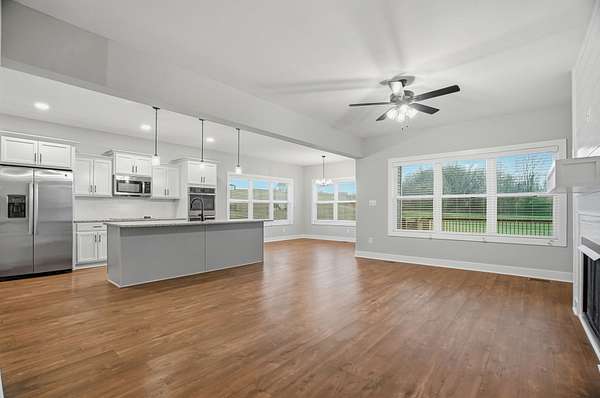 Bright and modern, this home sits on a generous 1.63-acre lot, offering both space and privacy. With approximately 2,955 sq ft of living area, it features an open-concept floor plan anchored by a chef-friendly kitchen with granite counters, double ovens, a glass cooktop, and a walk-in pantry. The primary suite on the main level provides easy first-floor living, while two additional bedrooms and full baths upstairs accommodate guests or family comfortably.