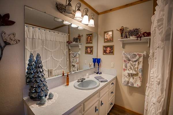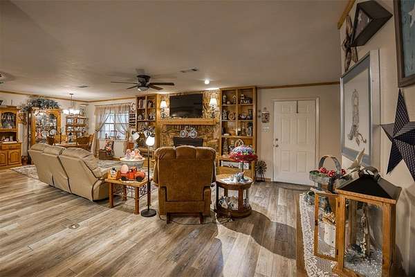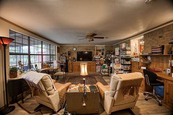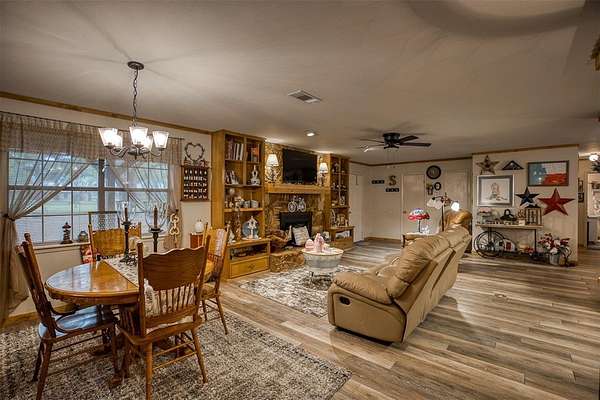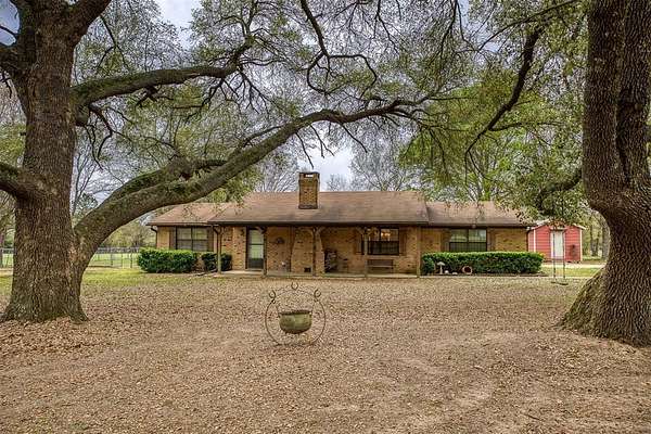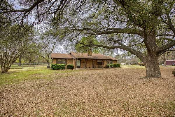 Beautiful brick home in a gorgeous setting of huge oak trees just outside the city limits. Located on a dead end street this home offers a quiet setting with little traffic on 2 acres. A large open concept living area with wood burning fireplace is perfect for family and entertaining. There is a split bedroom arrangement offering privacy. The large primary bedroom includes a huge walk in closet and en suite bath. Overlooking the back yard is a bonus room which would be a great den, office-work space or third bedroom, depending on your needs. An over sized pantry is conveniently located as you enter from the 2 car attached garage. A large concrete patio with both a covered and an open area is great for morning coffee or gathering around a firepit in the evening with friends and family. This is a must-see! Call today!