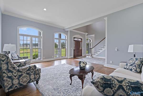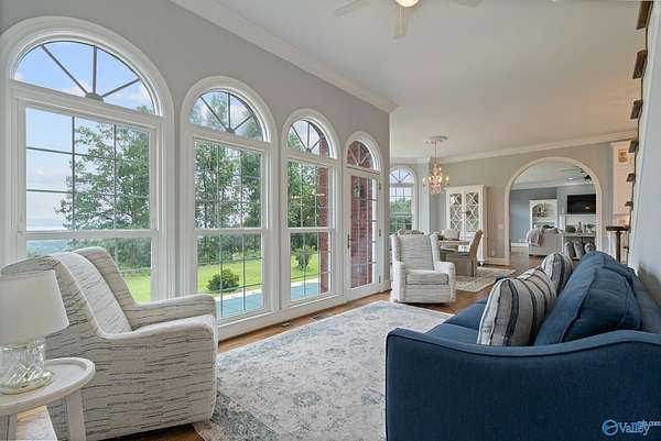 Breathtaking views from every window of this stunning estate on 17+ acres. Wake up to sweeping bluff vistas, vibrant seasonal colors, and a serene pond. This luxurious home features 6 spacious bedrooms, 7 baths, 11-ft ceilings, chandelier lift, double ovens, custom cabinets, and a spa-like bath with soaking tub and double shower. Enjoy formal dining, or casual meals in the beautiful view-filled breakfast room. Gourmet kitchen perfect for any chef! With laundry on every floor, a bluffside pool, private MIL suite, walk-out basement with storm room and apartment, this home perfectly blends Southern charm with modern luxury perfect for entertaining! This home is a must see!