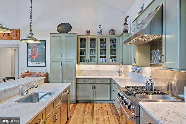 Arts & Crafts-inspired residence built in 2012 by Gate One Builders and designed by Fred Sieracki with exceptional materials and craftsmanship. Set on an elevated and private 5.46-acre wooded property, this home offers Broad Creek/ South River views, a deep-water, 100 ft private pier with boat lift, floating dock for kayaks, a living shoreline, and a fully fenced property with deer fencing. Exterior highlights include HardiePlank siding, custom stonework, curated landscaping, an outdoor shower, and a firepit. Inside, the first floor is reminiscent of a lodge-style retreat with vaulted ceilings and blue knotty pine wood floors reclaimed from a 1900s South Carolina mill. The open floor plan features a masonry stone fireplace, a gourmet kitchen with marble countertops, and a spacious screened porch for entertaining with big vistas across the property. The en-suite primary spa bath includes porcelain tile floors and marble countertops. Two primary suites plus a third bedroom/office are located on the main level. The walkout lower level provides flexible living space with a potential bedroom/sitting room, full bath, concrete flooring, and abundant storage. Enjoy spectacular sunsets, a gravel driveway with ample parking, and the feeling of being worlds away-yet just minutes from Whole Foods, Starbucks, and everyday conveniences. Seller prefers a 60 day close and all prefers to sell 95% of all furniture.