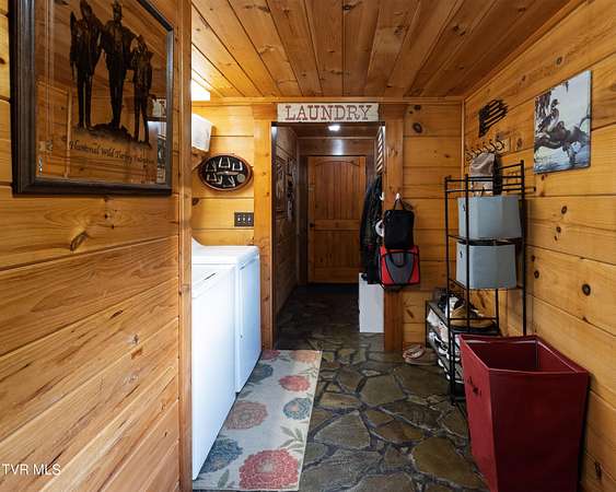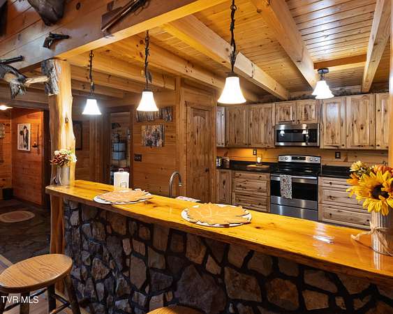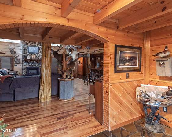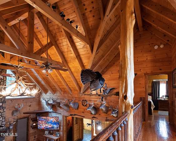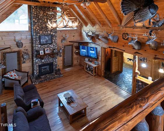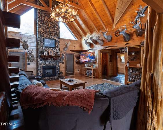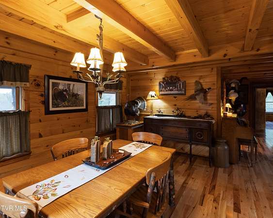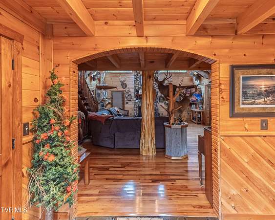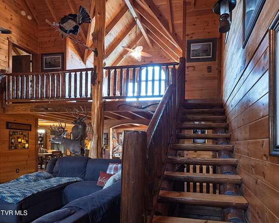 Experience the timeless beauty and craftsmanship of this stunning custom built log cabin in the foothills of East Tennessee. Nestled in its own 8.81 acres overlooking the peaceful southern countryside of Greene County, this one of a kind home gives you the rustic elegance of a cabin but the functionality of modern living. Featuring three spacious bedrooms and two full baths, you will be offered an open concept floor plan for living and entertaining. Conveniently placing a primary suite on the main living level along with a bonus room serving as a private study, office, spare bedroom, or nursery. Every square inch of this home showcases extraordinary attention to detail - custom milled logs inside and out, handcrafted finishes, and woodwork made specifically from trees harvested on this land. A partially framed unfinished walk out basement ensures additional living and recreational space with a large 2 car drive under garage. Outdoors and acreage reveal the peace of the countryside along with a large 2 car attached garage for parking, workspace, or hobbies. This custom log cabin allows relaxing on the front porch, exploring the lands, or simply soaking up the scenes from the Great Smoky Mountains. Wildlife from deer, turkey, and bear are sure to pass through from time to time, giving you yet another glimpse at a beautiful creation. Remarkably this home is a rare opportunity to own a truly handcrafted retreat in East Tennessee. 8.81 acres is an original approved plat, it is now part of parcel 136 009.13. The County Tax assessor says that the parcel will be separated when they receive a new deed upon purchase. Easement will be reserved for sellers to have access off of Jennings Ln(see highlighted plat and map)