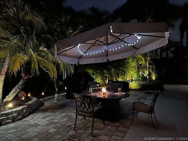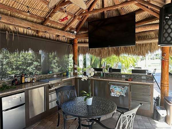GREAT PRICE on this lush, turnkey corner lot overlooking the 12th hole! Perfectly situated at Chipshot and Boundary, this expansive 4,000+ sq. ft. lot offers plenty of space for entertaining. The large tiki features a full kitchen with 2-burner propane stove, LG dishwasher, sink, mini fridge (2024), and a 70" TV (2025). Enjoy seating for 6 on the L-shaped sofa, bar seating for 3, and a dining/game table for 4. Roll-down screens, heaters, and ceiling fans ensure year-round comfort. The lot boasts fresh paint on the RV pad, extensive irrigated landscaping with over 20 palms, and gorgeous pavers throughout. Outdoor entertaining areas include a 6-seat wrought-iron fire table with umbrella, large Napoleon grill, and a peaceful rear lounging area overlooking the golf course and fountains, a perfect place to lounge and read a book in privacy. The expansive frontage provides a separate parking space accommodating 2 cars and a golf cart. Conveniently close to the north pool-this one has it all!
