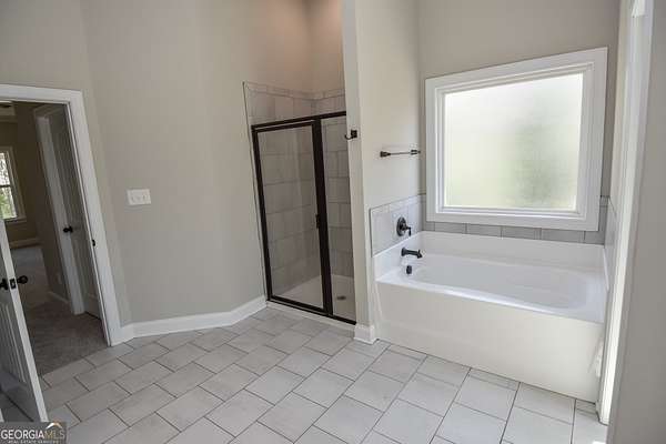 - Beamed Ceilings, Double Vanity, High Ceilings, Master On Main Level, Separate Shower, Soaking Tub, Tile Bath, Tray Ceiling(s), Walk-In Closet(s)