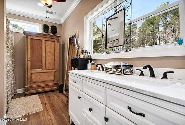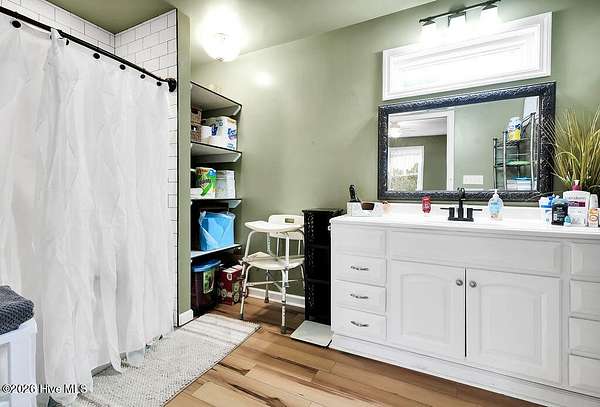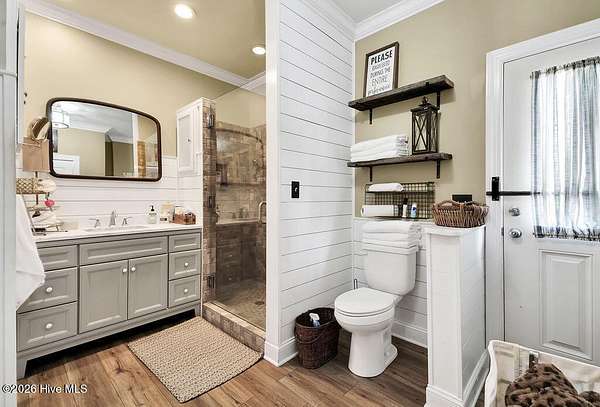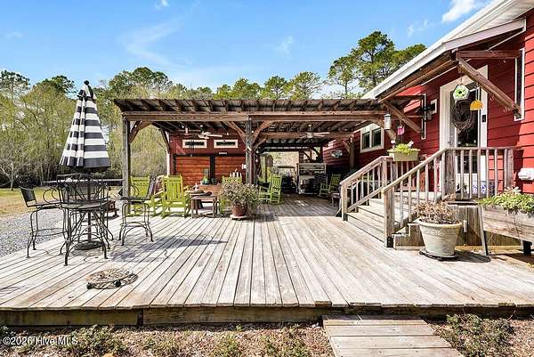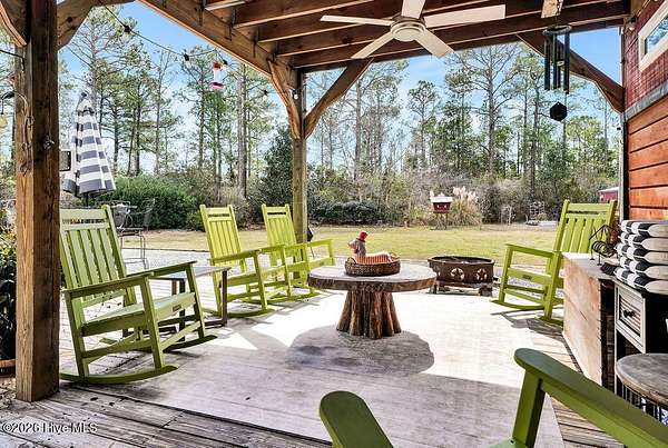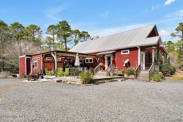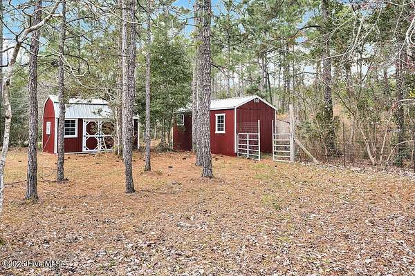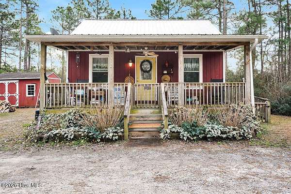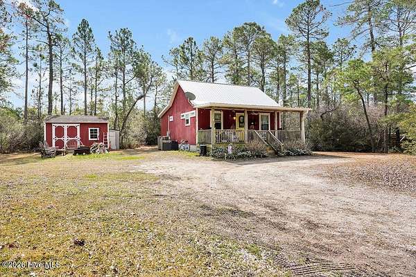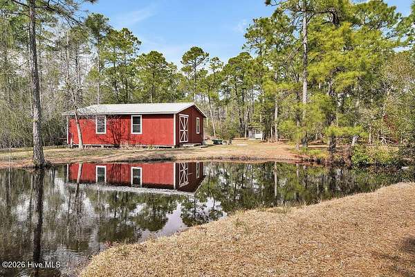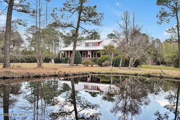 5.23 Acre Charming Country Estate overlooking pond in Boiling Spring Lakes/Winnabow area. Experience country living at its finest on this beautiful estate with pond, primary home, cozy rental cottage or guest house and numerous outbuildings. Enjoy single level living and an open floor plan in this 1456 square foot home with gas fireplace and two bedrooms and two baths. There is an unfinished second story that could be completed to add a third bedroom and bath or bonus space. Bead board ceilings add to the charm of this home and there is LVP flooring throughout. The chef's kitchen includes a copper farm sink with ample counter space for all your baking and cooking needs. There is a very generously sized pantry which includes a laundry area. The primary bedroom includes an ensuite bathroom with walk in shower. Outdoors there is a covered back patio and numerous outbuildings that could be used as workshops and or storage areas. There is a chicken coop and a fenced dog pen for your critters. In addition there is a 581 square foot one bedroom cozy cottage that is currently leased for $1200 on a month to month basis. Use this for supplemental income or for housing an additional family member or as a guest house. One private well and septic system services both the home and cottage.