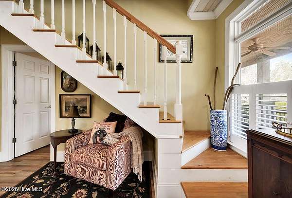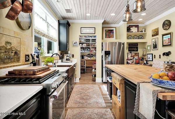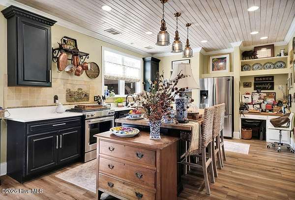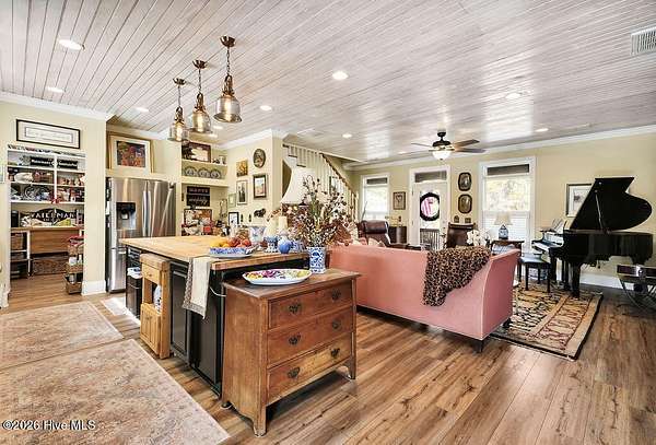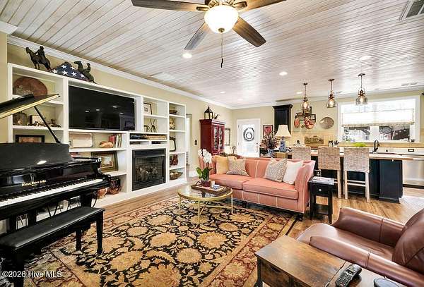 - Bookcases, Ceiling Fan(s), Eat-In Kitchen, Gas Log, Kitchen Island, Mud Room