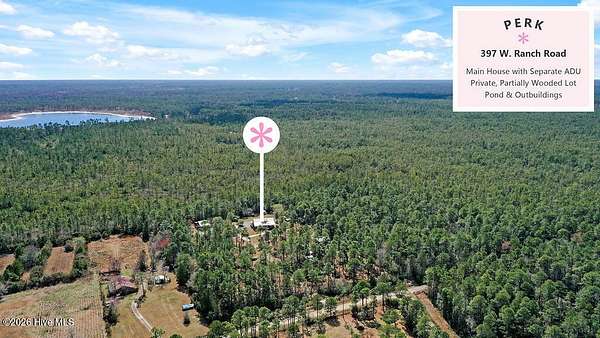 From Hwy 17 South turn onto 87 South towards Boiling Spring Lakes. Go Left at the traffic light to E. BSL Rd. Follow Detour Signs for Fifty Lakes Drive (Bridge Repair in Process). Pass Pretty Pond on your right and make a left on West Ranch Road (gravel road). Property is at the end of the road on your left.