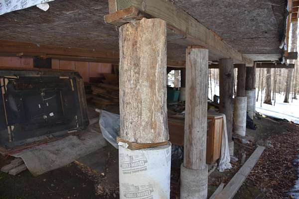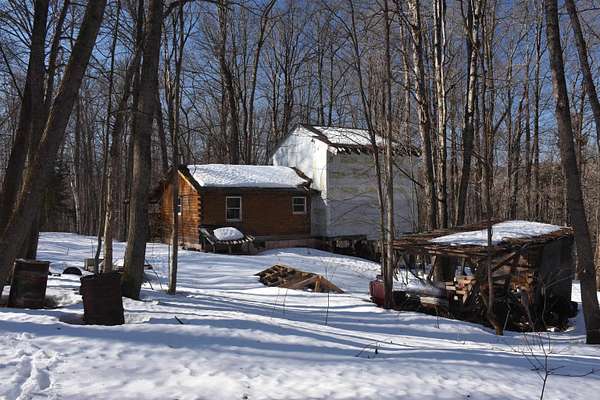 ATTENTION Nature Enthusiasts! Unfinished log dwelling with wood frame addition on an especially pleasant square-ish shaped, surveyed 18.06 acre lightly-wooded rural parcel the fronts on a town-maintained road at the far end of Winch Hill (Rural mail delivery thru Northfield PO, and Roxbury town plow's turnaround is only 100'+/- before driveway, so short Class 4 road to maintain). Sizeable covered porch (12'4x24'6+13'9x19'3). Somewhat level spread of land in the vicinity of the structure. Rustic utility sheds and lean-to. No water service to, nor sewage disposal system in place. Well-aged Elm wood stove has provided heat, included "as is; no warranty". Washington Electric Power pole across road. Parcel is subject to Winch Hill Forest Management Conservation Easement (Bk 35 p 175), Deed restrictions, Road maintenance agreement (Bk 35 p 241), and terms of Land Use permit 5-W-0914 (Bk 34 p 446), as may have been amended. (documents attached to marketing packet). No alteration, construction, storage of trash/hazardous materials, mining nor removal of topsoil allowed within the Conservation zone. Dogs must be confined or leased. Use of ATV's and snowmobiles limited to existing trails. No house trailers, mobile homes, motor homes or campers unless garaged. Building height shall not exceed 35', construction spec. minimum standards, etc. Sounds like a lot of restrictions, but really to your benefit to read them through as they are not as heavy as they sound. House is being offered in "as is" condition with remaining building materials included in the sale. Exterior access to basement but lack of stairs will require special care - Bring flashlight - nvestigations will require sensible, thoughtful self-care, at your own risk.