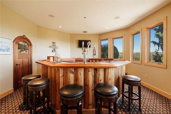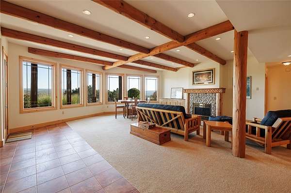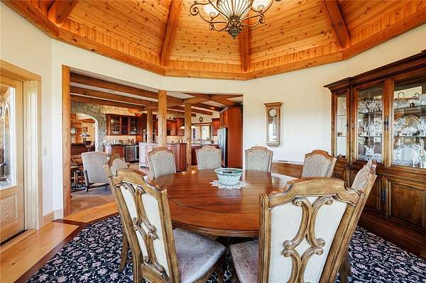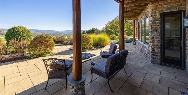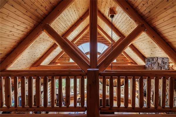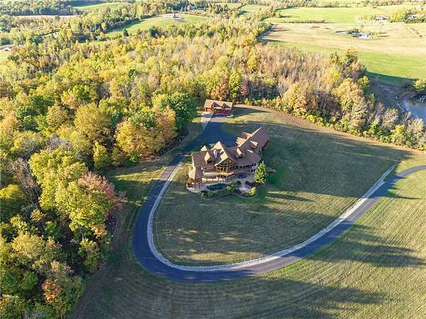 Experience an extraordinary custom-crafted luxury log estate set on 35 pristine acres overlooking the breathtaking Honeoye Valley. Bordering protected land at the Honeoye Creek Wildlife Management Area, this property offers unparalleled privacy and panoramic views in every direction. Easy access to nearly 700 acres of state land means you can hunt, hike, horse back ride and fish Honeoye Creek as much as you want! Located about 30 mins from the city of Rochester, and 20 mins from Victor for convenience of shopping and restaurants. A grand foyer opens to a dramatic great room showcasing soaring ceilings, massive timber beams, walls of windows, and a striking stone fireplace. The chef's kitchen is beautifully appointed with cherry cabinetry, dual oversized islands, flowing seamlessly into an impressive octagonal dining room designed for elegant entertaining. Upstairs you will find a sitting area, & three additional bedrooms which boasts even more great views. The main-level primary suite is a private retreat featuring a gas fireplace, spa-style bath with walk-in shower, and direct access to a gazebo-enclosed hot tub overlooking the valley. An elevator services both the main level and the fully finished walk-out lower level, where you'll find a living room with a stone fireplace, movie theater, custom octagonal bar with wine cellar, and a private in-law suite ideal for guests or multigenerational living. Outdoors, the two private ponds enhance the serene setting, along with a horse barn with an attached shop great for storage and equipment. Don't forget the additional detached garage that includes a heated workshop! This rare property offers privacy, world-class craftsmanship, acreage, and refined luxury living at its finest. This home is an absolute dream come true for every outdoor enthusiast! View Virtual Tour Here: