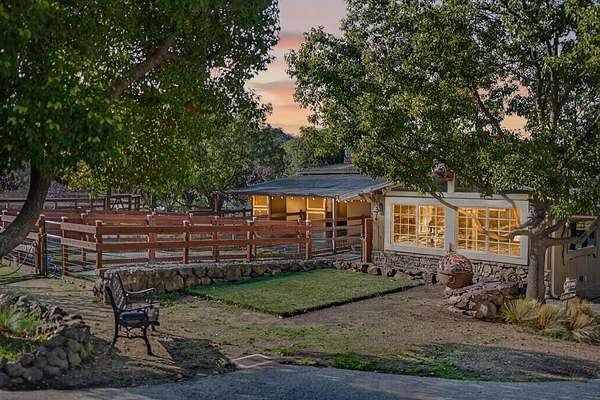 Centrally located between Silicon Valley and Carmel, three minutes from the freeway, Shangri-La-Dee-Da is a private estate surrounded by open land, rolling hills, and private ponds. Horse enthusiasts must see! Spanning 58+ acres, the property is a PREMIER EQUESTRIAN ESTATE, private family compound, and destination venue. The land includes two year-round ponds, two existing wells, solar-powered vineyard irrigation, organic non-pesticide grounds, approx 35 fruit trees, and internet service with two Starlink towers. The main residence approx 4,222 sq ft with 4 bed/3 bath, plus an additional 1,180 sq ft finished basement (unpermitted square footage). A 2,300 sq ft 3 bed/3 bath guest house, providing accommodations for extended family, guests, caretakers, or event use. Equestrian amenities include two arenas (one covered), two barns, 10 stalls, a round pen, and an 85' Euro-walker. A large covered steel arena (86 x 200) supports year-round riding, clinics, and events. The vineyard spans 14 acres across three varietals with a separate service entrance, and a wine cellar complements the land. The property offers successful Airbnb use, weddings, private events, retreats, and wine production. Extensive infrastructure, drainage, and natural wind and fire protection allow for year-round use.