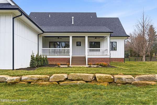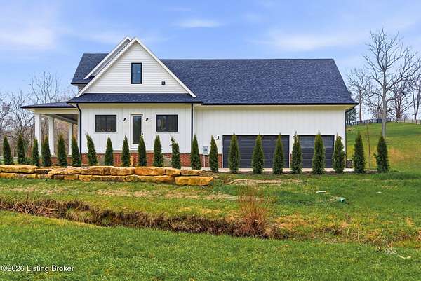 Introducing a brand new 1.5 story home in Oldham County. This home sits off Covered Bridge Road on one of the only NON-HOA lots in the area. This home is a few minutes from the City of Prospect, Norton Commons, SEVERAL golf courses, and many of the highest rated private and public schools in the state. Built on 1.86 acres in a beautiful rural setting, this home feels ''away'' from the rush of the city. When you walk inside the home, you will immediately notice the beautiful kitchen with a walk-in pantry AND a butler pantry. As you continue to explore the home, you will feel the amount of care the builder put into the place. From the professional tile work in the bathrooms to the 900+ square feet of covered porches, this home offers an incredible amount of utility and comfort.
