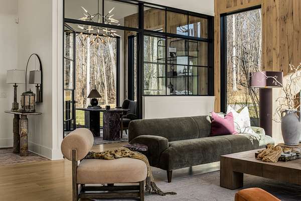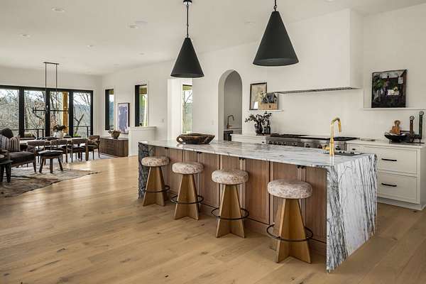 This exceptional residence is in a league of its own. Showcasing vaulted ceilings, floor-to-ceiling windows, and luxury design and finishes throughout. The primary suite serves as a true retreat with gas fireplace, heated floors, California His and Hers closets, and a spa-inspired bath featuring a built-in sauna. The finished basement includes a golf simulator/home theater, cigar lounge, gym, and wet bar. Outdoors is an entertainers dream, complete with a saltwater pool and spa accented by fire features, tanning deck, outdoor kitchen, and multiple entertaining areas including three fire pits. Completing the home is a 1,200 SF ADU with studio, kitchenette, and full bath- offering seamless flexibility for guests, in-laws, or extended living. This estate is truly one of one. Total square footage and bedroom/bathroom count include the ADU.