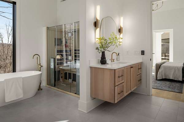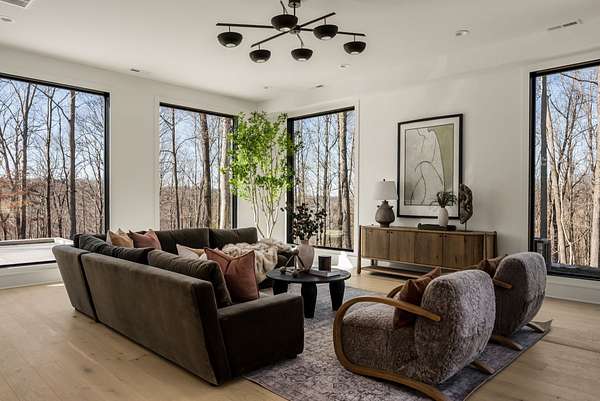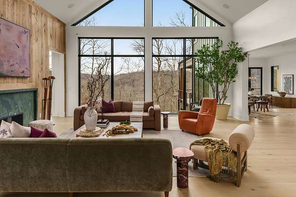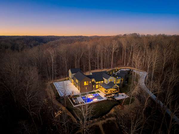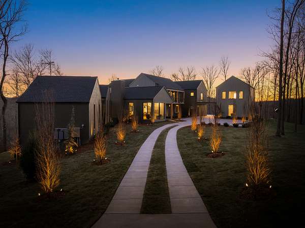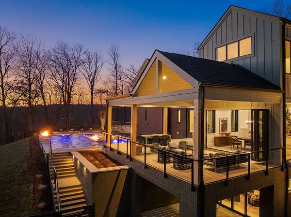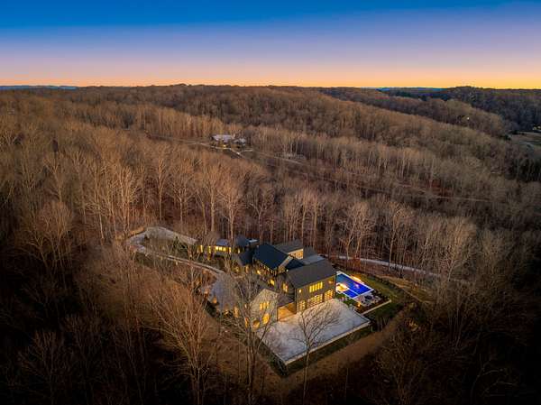 The Hill House Estate is a one-of-one 2026 custom Riverbirch build set on nearly 10 secluded acres with sweeping, unobstructed views of the Natchez Valley, Natchez Bridge, and Franklin’s western ridge tops. Positioned atop a hill behind a private gated entrance with porte cochere, this rare offering delivers exceptional privacy just minutes from Leipers Fork Village, Downtown Franklin, Westhaven, and only 25 minutes to Nashville. Zoned for Franklin High School. Designed to impress at every turn, the residence showcases vaulted ceilings, floor-to-ceiling windows, and elevated finishes throughout. The primary suite is a true retreat featuring a gas fireplace, heated floors, California his and hers closets, and a spa-inspired bath with a built-in sauna. The finished basement was created for entertaining with a golf simulator and home theater, cigar lounge, gym, wet bar, and generous gathering spaces. Outdoors, enjoy a resort-caliber setting complete with a saltwater pool and spa with fire features, tanning deck, outdoor kitchen, multiple entertaining areas, and three fire pits. Completing the estate is a 1,200 SF ADU with studio, kitchenette, and full bath, ideal for guests, in-laws, or extended stays. Total square footage and bedroom and bathroom count include the ADU.