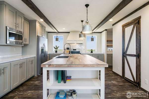 Your own personal country oasis has arrived!! Welcome to this stunning 10-acre horse property, 4-bedroom, 2-bath home that perfectly blends comfort and functionality. The heart of the home boasts modern stainless steel kitchen appliances, including a gas range equipped with a range hood, along with ample cabinet space and a large kitchen island with eat-in capability-ideal for all your culinary needs. Enjoy the convenience of a butler's pantry and a huge primary pantry for extra storage. The luxurious primary suite includes a five-piece bathroom and a generous walk-in closet. This property features three separate fenced areas, making it ideal for horses, along with a pair of loafing sheds. Additionally, a 30 x 40 shop with a covered front patio is equipped with electrical, 220 V, and RV power hookups perfect for all your projects. Conveniently located within 10 miles of two fire stations, just 6 miles from downtown Briggsdale, within 5 miles of the Pawnee National Grasslands, and within 30 minutes of the Pawnee Buttes, this property offers endless possibilities for outdoor activities and tranquil living. Don't miss the chance to make this exceptional estate your own! All property features and upgrades are attached in the documents.