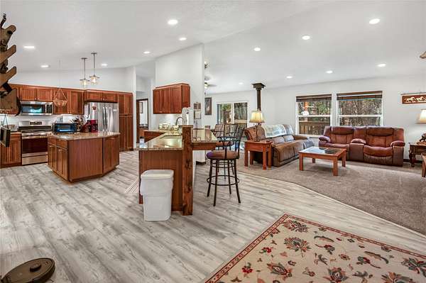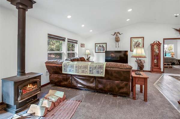 Welcome home to your Montana Lifestyle Upgrade! Situated on 4 acres with thoughtful design and finishes, you'll find this perfectly sized, turn-key ready home waiting for you to move right in. On arrival, you'll love the private feel and relaxed atmosphere of the area, lot, and home. Once inside, you'll fall in love with the open floor plan, well defined spaces, dream kitchen and pantry, generous primary suite, and so much more. This is single level living at its best, with 3 large bedrooms and 2 full baths complimenting large living spaces with plenty of natural light. Additional features include a cozy wood burning stove, backup power generation, an oversized 3 stall garage, and your own private swim spa in it's own building. Outside is a large fenced yard area as well as even more private space to walk, grow, relax, and enjoy. There is a seasonal creek and the perfect mix of trees and meadow for your enjoyment and peace of mind. Don't delay, make this MT dream home your's today!