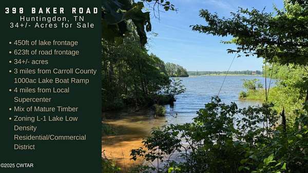 Discover the unmatched potential of this 34-acre wooded paradise located just outside of Huntingdon, TN. Featuring gentle rolling terrain and direct water frontage on the renowned Carroll County 1,000-acre lake, this rare tract offers a unique blend of natural beauty, accessibility, and versatility. Whether you're looking to develop a lakeside community, build a luxury estate, or simply escape to your own private sanctuary, this property delivers. Mix of mature timber provide a serene, secluded atmosphere, while the topography allows for easy access and a variety of building sites-all with the peaceful backdrop of the lake. Opportunities like this don't come often. Whether for personal use or investment, this land is a true gem with endless potential.