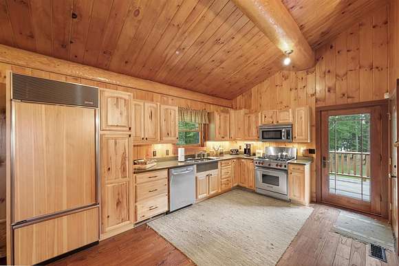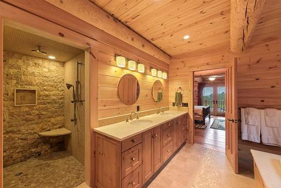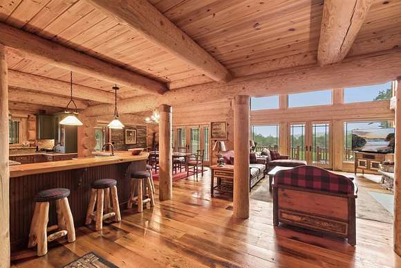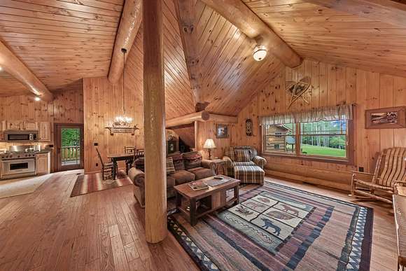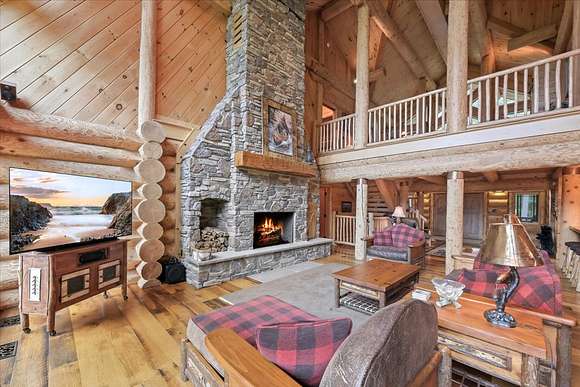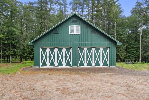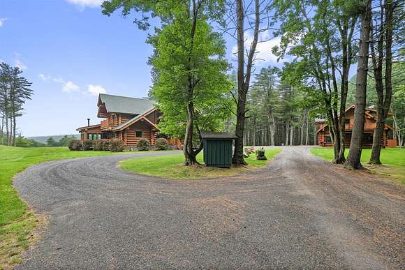 There are properties few and far between that can capture architectural brilliance, a mastery of interior design and environmental tranquility all at once. Now is the chance to own something truly remarkable, a harmonious blend of rustic charm and contemporary luxury, a property in a class of its own. As you enter through the private gates, up the quarter mile long driveway "The Hart Ranch" awaits your arrival. Four buildings, miles of private trails and 57 manicured acres, nestled in the heart of the Neversink watershed anti-development zone, 2 hours from NYC. As you arrive, you are greeted by the stately presence of the main lodge, offering 6,000 sqft of finished space, authentically built with 1st growth 18" Douglas fir logs, imported from British Colombia. With meticulous attention to detail, the main lodge boasts four bedrooms, three and half bathrooms, fitness room, full bar and spacious living areas, adorned with exquisite finishes and large windows that invite natural light to pour in creating an atmosphere of warmth and serenity, simultaneously serving as the heart of the property providing ideal spaces for gathering with loved ones and enjoying cherished moments together. For your esteemed guests, upstairs the guest lodge offers a private sanctuary with unparalleled comfort and style equipped with its own living space, fireplace, private balcony, full kitchen, bedroom and bathroom, capturing the essence of gracious hospitality. Adjacent to the residences, the 60x40 storage garage and the 40x30 horse stables stand proudly, catering to the equestrian enthusiasts, built post and beam style from timber harvested from the property, combining functionality and aesthetic appeal. Situated a short distance from local amenities, this oasis offers the best of both worlds- privacy and seclusion along with convenience and community. Prepare to be enchanted by the beauty that surrounds you, where luxury and nature seamlessly intertwine.