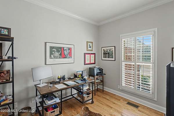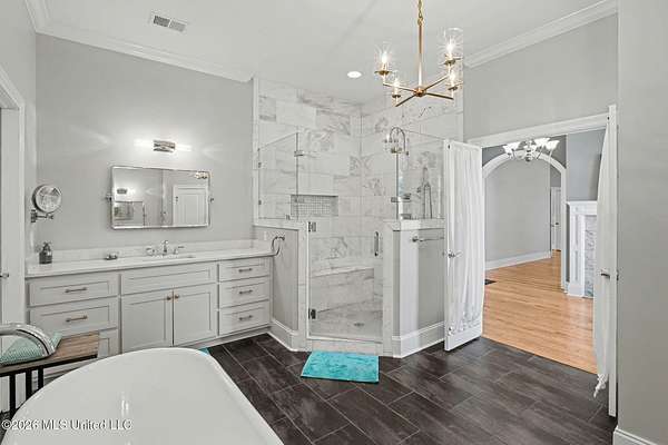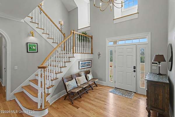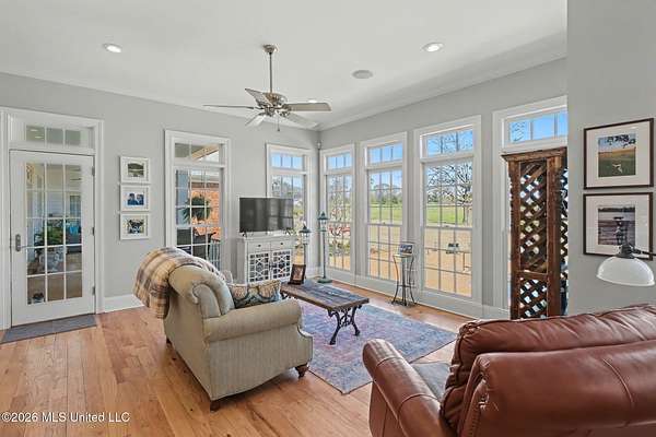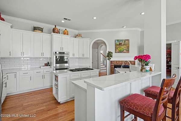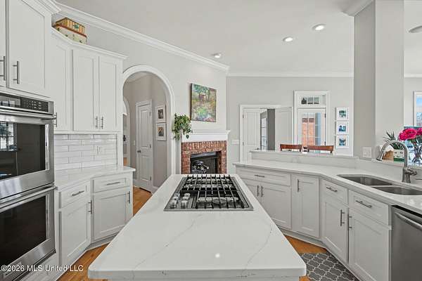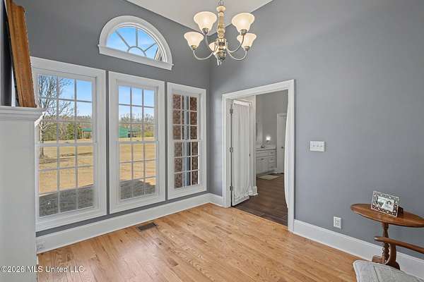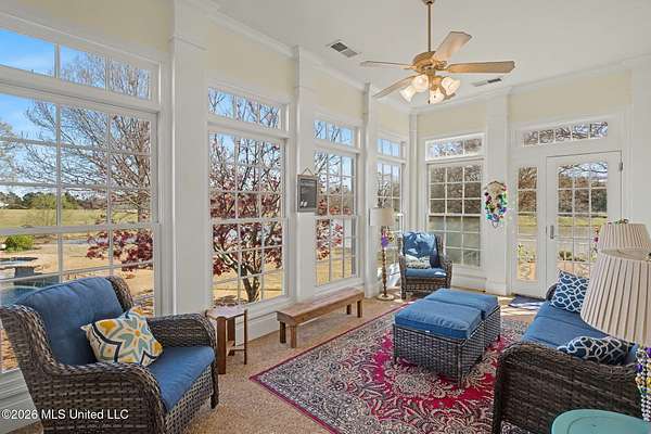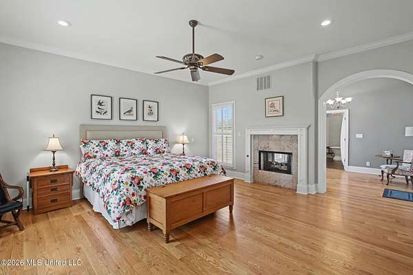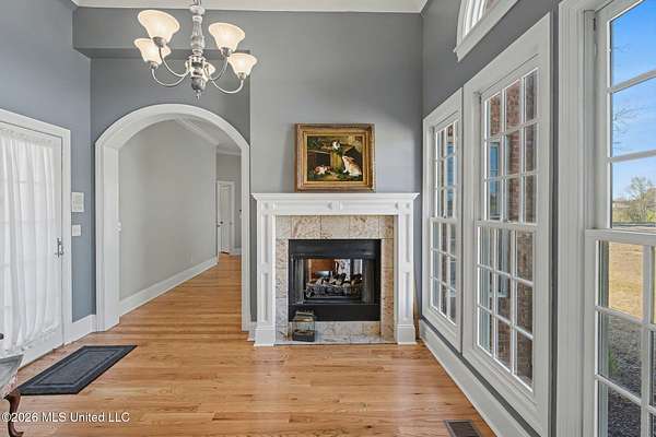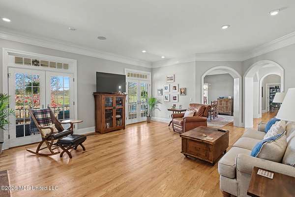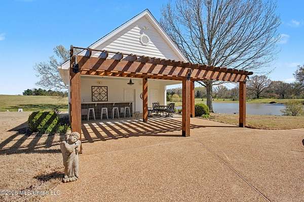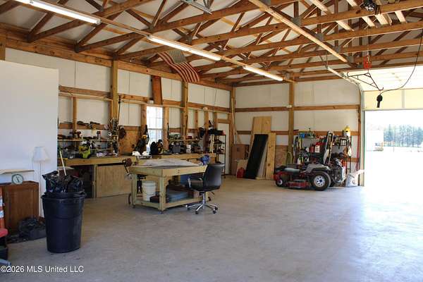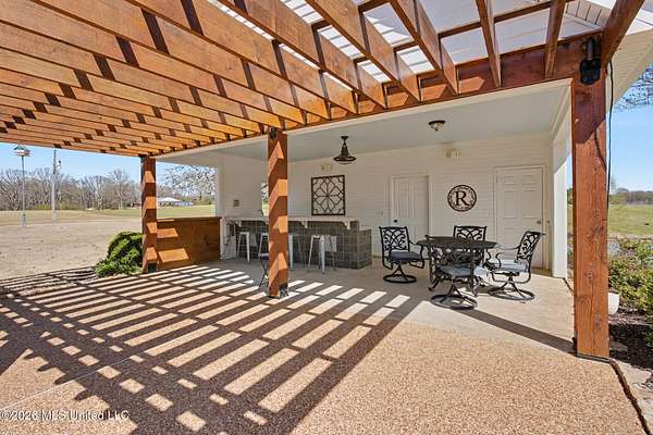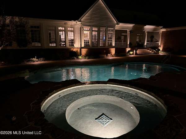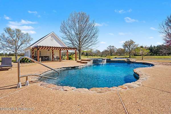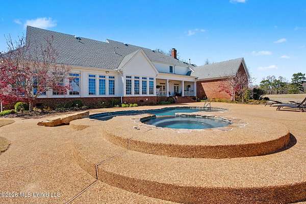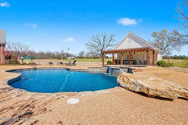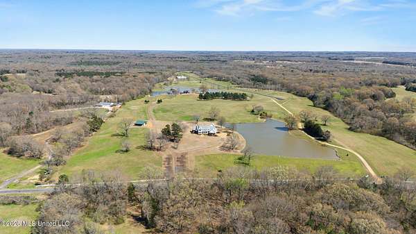 Welcome to 398 Crawford Rd in Coldwater, MS--an exceptional, beautifully updated estate set on approximately 27.48 acres, offering a rare blend of space, comfort, and outdoor living. This impressive two-level home encompasses approximately 5,100 square feet and welcomes you with a grand open foyer, soaring ceilings, and an elegant staircase. Throughout the home, you'll find hardwood flooring, crown moldings, arched openings, and plantation shutters that add timeless character. The home offers five bedrooms, with the primary suite and two additional bedrooms located on the main floor, and two bedrooms upstairs, providing a flexible layout for a variety of living arrangements. There is also a bonus room or office area upstairs. Designed for both everyday living and entertainment, the recently renovated kitchen features quartz countertops, subway tile backsplash, double electric ovens, a 5-burner gas cooktop, and a large walk-in pantry with custom wood shelving. The breakfast bar with its own fireplace creates a warm gathering space, and the home includes a total of three gas log fireplaces. The main level also offers a sunroom with floor-to-ceiling windows, filling the space with natural light and providing beautiful views of the outdoor areas. The primary suite serves as a private retreat, complete with a sitting area, a double-sided fireplace, and a fully renovated bathroom with soaking tub, walk-in shower, dual vanities, and two walk-in closets. The home includes four full bathrooms and two half baths, providing flexibility and convenience. Step outside to enjoy an inviting outdoor living area centered around a gunite pool with a built-in hot tub. The pool house features an entertainment bar and a new pergola, making it an ideal setting for gatherings. Multiple sets of French doors connect the indoor living spaces to the rear patio and pool area for seamless indoor-outdoor flow. The property also features a 3.5-acre stocked pond with bass, bream, and catfish, along with a fishing dock, offering additional opportunities to enjoy the surrounding landscape. A gated entrance enhances privacy, while the expansive acreage provides room to explore and enjoy. An irrigation system helps maintain the grounds. Additional highlights include a three-car garage, a large extra parking pad, front and rear porches, and an oversized laundry room with sink, folding area, and refrigerator. A 15' x 36' floored walk-in attic provides excellent storage space. A newly constructed 34' x 40' shop includes 14-foot overhangs on both the front and back, 110-volt wiring, and a full bathroom. Recent updates include interior painting, renovations to the kitchen and primary bathroom, and refreshed landscaping and flowerbeds. This well-appointed property offers a unique opportunity to enjoy a spacious home with extensive amenities in a private setting.