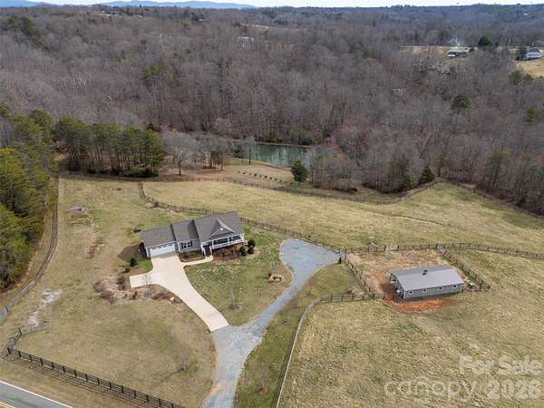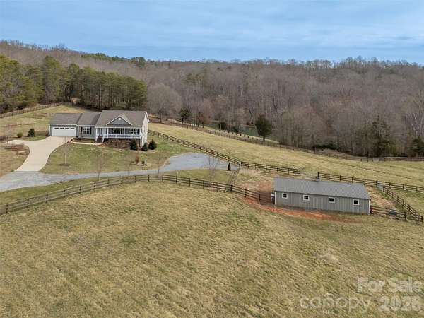 Welcome to your dream equestrian retreat! Situated on 6.29 beautiful acres, this immaculate home offers the perfect blend of comfortable living and thoughtfully designed horse facilities. The equestrian amenities are ready for you and your horses, featuring a 3-stall shedrow barn complete with a tack room, rubber mats in stalls, a convenient rack and hay storage, and power and water access. A dry lot surrounds the barn for easy turnout and management, along with two separate 2-acre pastures enclosed by classic four-board fencing. Whether you're a serious equestrian or simply enjoy country living, this property is designed with both function and beauty in mind. Inside, you'll love the seamless flow between the great room, kitchen, and dining area - perfect for entertaining or everyday living. The kitchen features granite countertops and ample workspace, creating a warm and inviting heart of the home. The spacious primary suite features a walk-in closet and a luxurious en-suite bath with a large soaking tub and a separate shower. Two additional bedrooms and an additional full bath provide plenty of space for family, guests, or a home office. Enjoy breathtaking western mountain views from the large covered front porch, or unwind on the spacious rear deck overlooking your private acreage. Just 15 miles to Tryon International Equestrian Center and only minutes from downtown Rutherfordton, this property is ideally positioned between Charlotte, Asheville, and Greenville - making it a rare opportunity to own a turnkey equestrian property in a prime foothills location. Location, lifestyle, and land - this one truly has it all!