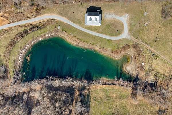 This unique 4 BR, 1 BA home (with soaker tub) offers 1344 sq ft of comfortable space with luxury vinyl plank flooring throughout. Plans are available to add a 2nd bathroom upstairs. Adjacent to the main home is a 38'x64' large workshop/motor home bldg with three 10 x 12-foot doors and one 12x14 ft door, housing a fully outfitted tiny home with 1 BR and 1.5 BA---perfect for guests or as rental potential. Powering this unique compound are 2 leased propane tanks---one 200 gallons, the other 330 gallons. A standout feature is a massive 52 ft diameter footprint excavated for a future round house, envisioned to rise 24 ft high. The $23,000 pre-cut foam pieces will convey--making this the 3rd house on the property. The house features a spring-fed water system with a purification system, ensuring fresh clean water flows year-round. You'll also find not one, but two ponds, the larger, approximately 1.25 ac, is stocked with bass, crappie, minnows, blue gill, sun perch, and red ear. Peaceful living, room to grow and hunting!