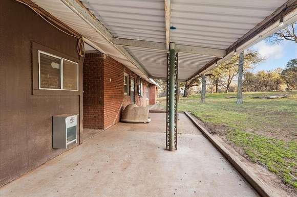 Get ready for a taste of country living! 4 bedroom, 2 bath home that's over 2,300 sq ft on over 4 acres of wooded land that's just outside of Palo Pinto & 15 mins west of Mineral Wells. Front porch views of the countryside on a cool morning are priceless. Deer & hogs traffic the pasture viewed from the front porch. Property is fully fenced with an arena & loafing shed in back. Off the carport is a small workshop with bench and electric. Property features a water well that is not currently being used, co-op water, and septic. Land has been lightly cleared to make it accessible and enjoyable. Storage building behind the house is perfect for the lawn mower and other general equipment. Begin your new homestead today!