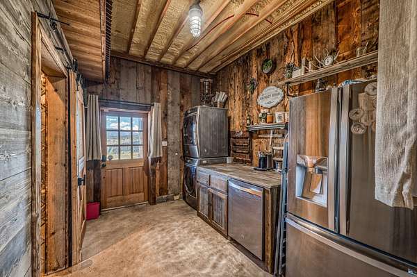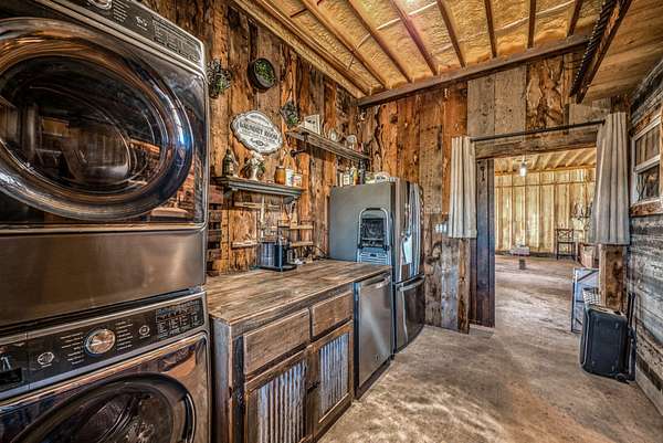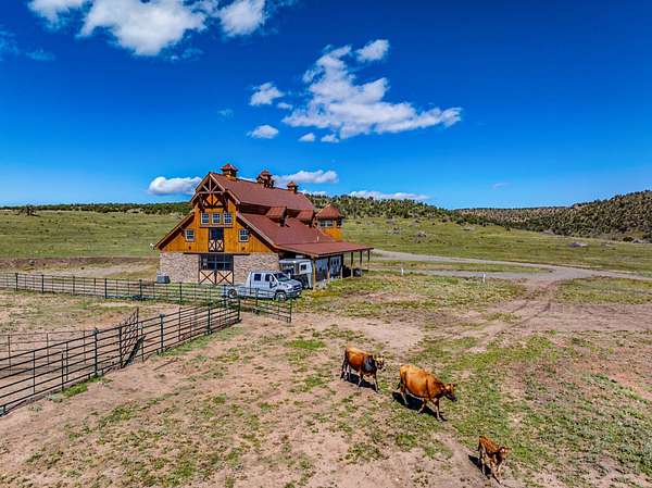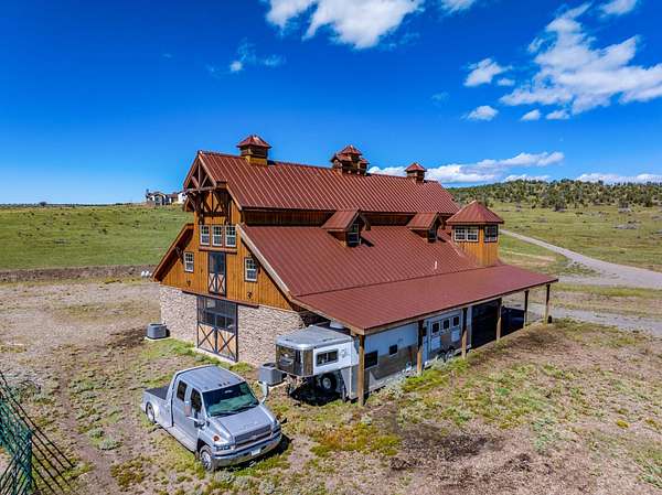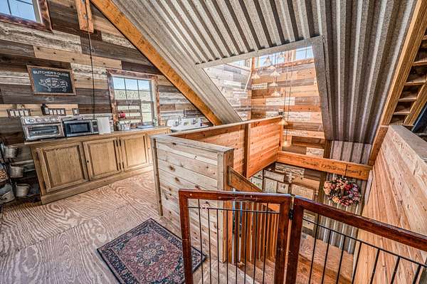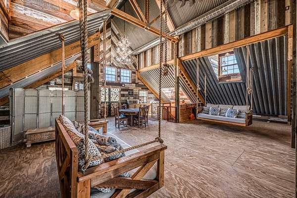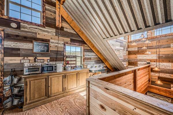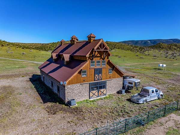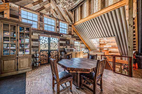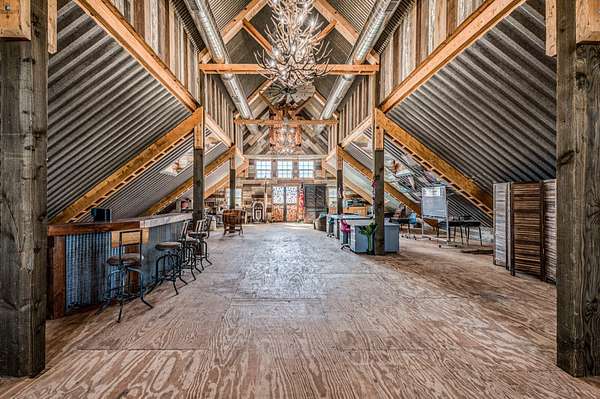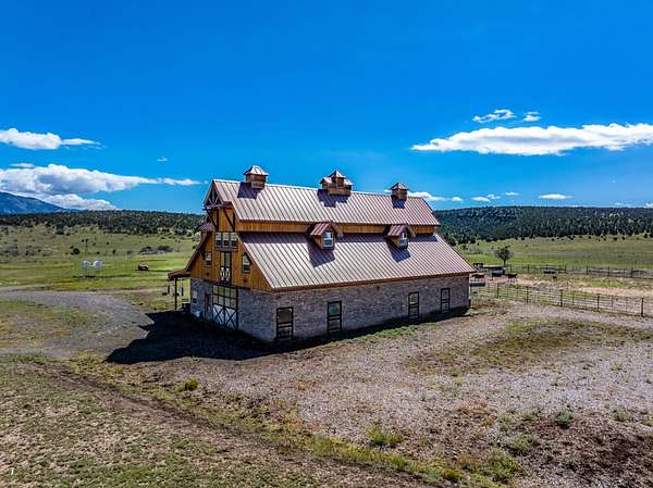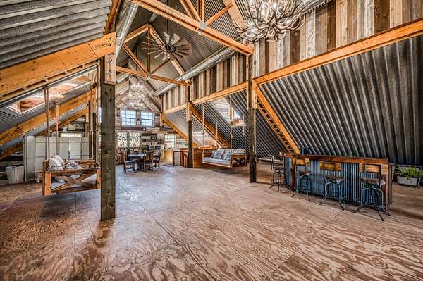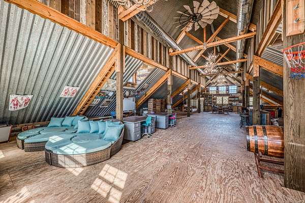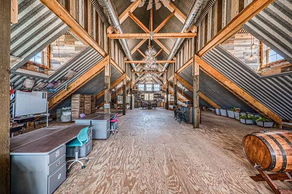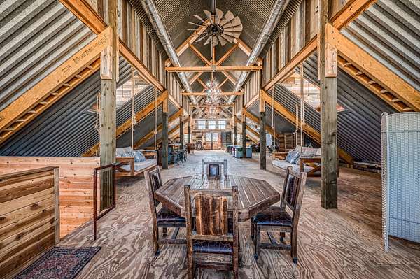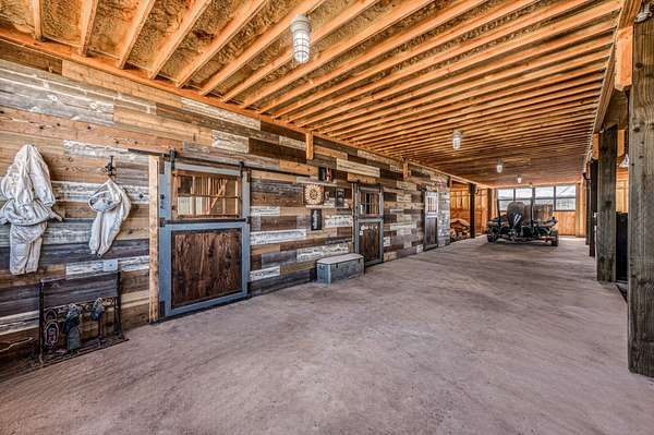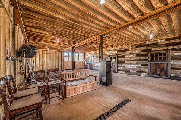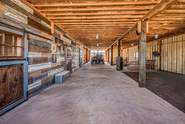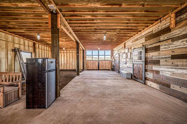 A thoughtfully designed barn offering both high-end functionality and exceptional multi-use space, this well-appointed facility overlooks a potential arena site and features spacious 14' x 14' stalls, providing ample room and comfort for horses and other livestock. Spanning approximately 5,716+- sq ft (buyer to verify), the barn blends practical utility with modern comfort--making it ideal not only for ranch operations but also as a flexible venue for entertainment, guest accommodations, and workspace. Equipped with a dedicated veterinary suite, the barn supports great on-site animal care. Processing and breeding areas enhance operational efficiency for livestock management, while the potential arena location makes this an excellent setup for training, competition preparation, or recreational riding. In addition to its residential and recreational elements, the barn includes substantial space for equipment storage, feed, and tack. This facility delivers the infrastructure and versatility to support both a fully functioning ranch and a multi-purpose lifestyle hub. Whether you're managing livestock, hosting guests, or crafting a personalized living or working environment, this barn is built to exceed expectations.