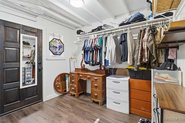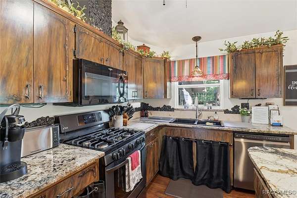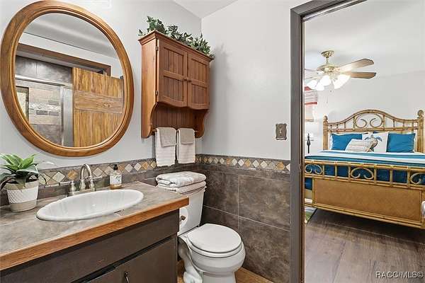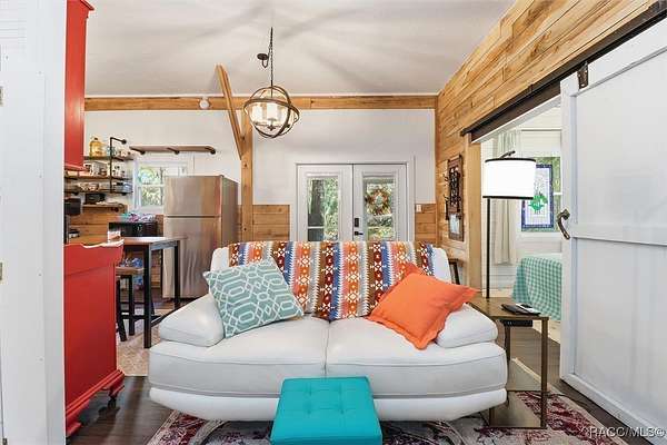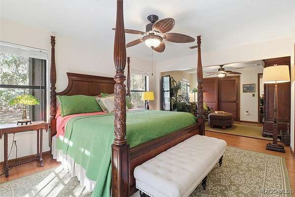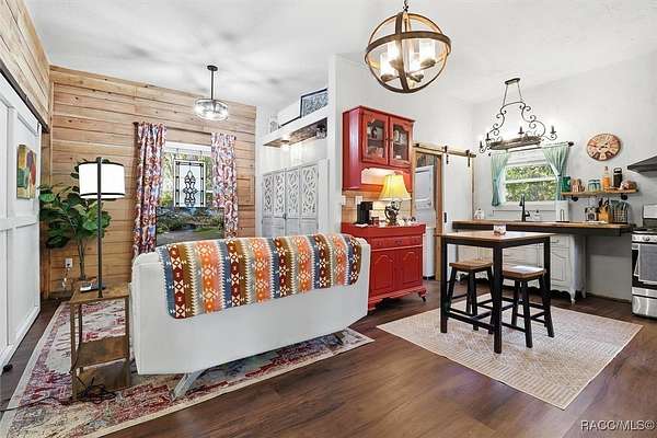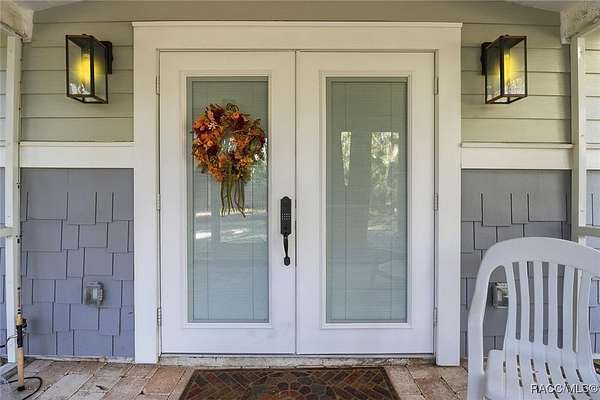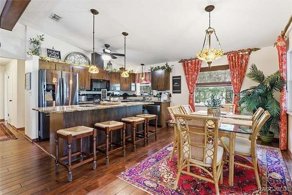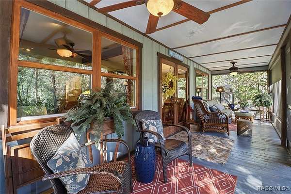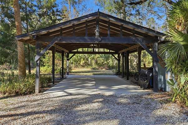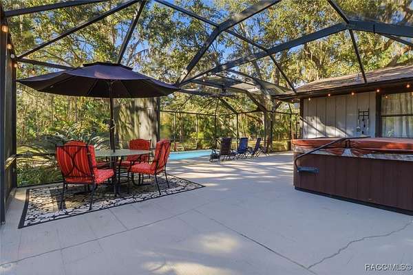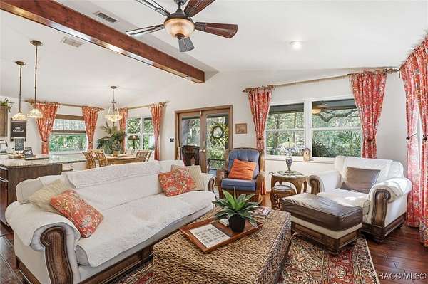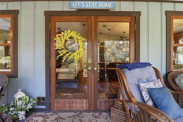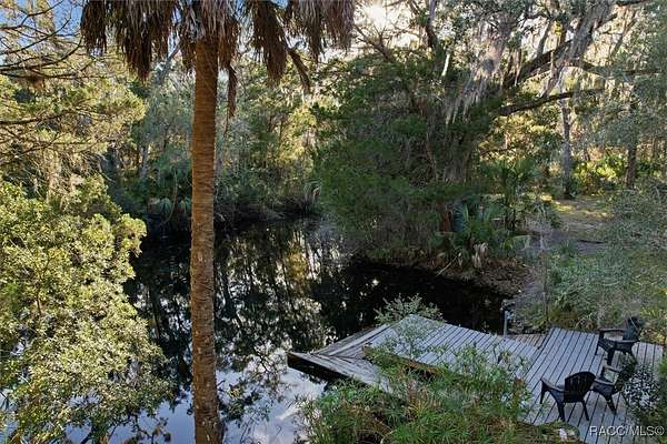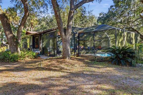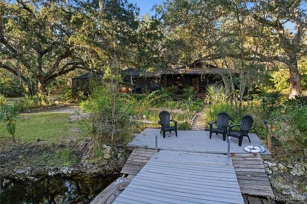 Welcome to your own slice of paradise. This home exudes the "Old Florida" charm and sits on 4.48 acres of lush, tropical beauty, where majestic oaks draped with Spanish moss, magnolias, and a variety of fruit trees create a canopy of shade and color, and a tranquil 1/4 acre pond with its own dock and waterfall that invites quiet afternoons of reflection or fun with family and friends. The main home offers 1,685 of living space with screened-in front porch, three bedrooms and two baths in an open-concept design that feels both spacious and welcoming. A beamed ceiling, walnut wood floors and a cozy electric fireplace set the stage for holiday gatherings and everyday comfort in the entertaining areas. The kitchen is the heart of the home, with a central island for prepping meals, stone countertops, gas stove, pendant lighting, and warm wood cabinetry that make cooking a joy. The primary bedroom is a true retreat, generously sized with a sitting area and French doors that open to the lanai and walk-in closets. The ensuite bath features a soaking tub and rain shower, creating a spa-like escape at the end of the day. Two additional bedrooms along with the main bath's dual entrance adds thoughtful functionality for family and guests alike. Step outside to the screened-in oasis, where an in-ground fiberglass saltwater pool and hot tub invite relaxation in a private, tropical setting. Whether you're hosting summer barbecues or enjoying a quiet evening under the stars, this space is designed for making memories. The home is reminiscent of a French Colonial tropical home, beautifully appointed with rattan and Tommy Bahama furnishings available separately. Tucked away on the property you'll also find, the renovated 30x20 cottage offers its own screened porch, high ceilings throughout with hand-cut cypress paneled walls, and laminate flooring. There is a custom kitchen with live edge sink and gas range, living area, bedroom, and bath-ideal for guests, extended family, or even a creative studio. You'll appreciate the 3-4 car carport, RV/Boat Port (pull-thru) with water hookup, and additional RV spot with electric and ROOF 2025! Public Water/Irrigation Wells/2 Septics. Fully fenced and free of deed restrictions, this property offers both privacy and freedom (with the option to purchase additional adjacent lots separately). The Florida's Nature Coast is a less-developed area, known for its abundant wildlife, crystal-clear springs, salt marshes, and blackwater rivers, offering kayaking, fishing, and nature viewing. Here, you will be 3 miles from 3 Sisters Springs, 4 miles from Hunter Springs where you can swim with the world-famous manatees and be minutes from the Gulf of Mexico, boat ramps, restaurants and shopping. Abundant fresh seafood is a mainstay here, either caught by you or in one of many fine restaurants. This well-rounded property offers strong investment potential, snowbird retreat possibilities, family-friendly living, or rental income opportunities. Call today!