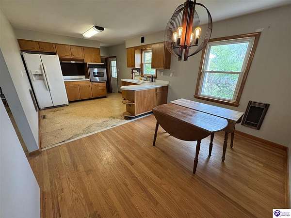 Beautiful brick home situated on approximately 3.5 acres in a private, peaceful setting in Brandenburg. This property offers a great blend of space, functionality, and potential. The home features 4 bedrooms and 1 full bath, with one of the bedrooms previously serving as an attached garage—offering the flexibility to easily convert it back if desired. A full unfinished basement provides ample storage or the opportunity to expand living space. Outside, you’ll find a scenic pond, perfect for enjoying the natural surroundings, along with a detached garage and carport for additional parking, storage, or workshop space. A separate lot with utilities already in place adds significant value and versatility, ideal for a future residence, guest space, or potential income-producing opportunity. Conveniently located with easy access to local amenities while still offering the privacy of a larger acreage property. This unique property presents multiple possibilities for homeowners or investors alike.