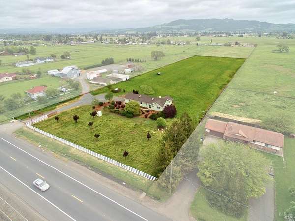 Discover the freedom of true country living on nearly 5 level, fully usable acres, perfectly positioned in the path of city future growth, an increasingly rare offering that combines long-term upside, privacy, and convenience. Tucked away in a peaceful setting, yet just minutes from town, this property delivers the best of both worlds. The charming 3-bedroom, 2-bath residence features an open, comfortable floor plan with a spacious living area, functional kitchen, and generously sized bedrooms ideal as a primary home, weekend retreat, or future expansion site. Outside is where this property truly shines. The flat acreage offers limitless possibilities: build a resort-style pool, barns or workshop, create an orchard or garden, accommodate RVs, boats, trucks, equipment, car collections, or design your own equestrian setup. There's ample room for horses and animals, recreational courts (tennis or pickleball), and future improvements as the area continues to develop. The property includes multiple outbuildings, fenced areas, easy RV access, and a striking industrial-style metal building perfect for private events, entertaining, or creative uses. All this, while enjoying quick access to Stony Point Road, Highway 101, and Highway 12, keeping you seamlessly connected to shopping, dining, and services. A rare chance to own substantial, usable land with a comfortable home private, versatile, and positioned for the future. Finalmente, el Rancho que siempre quizo tener !