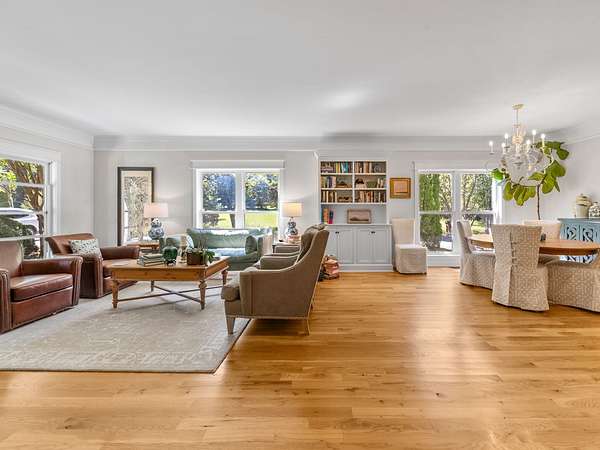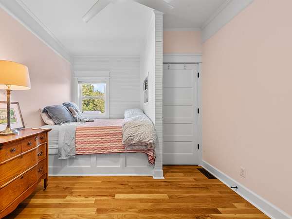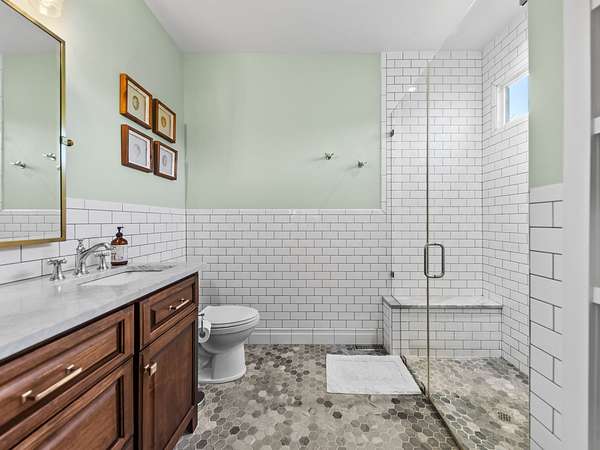 Notable finishes include 9-foot ceilings, locally milled white oak floors, solid-core five-panel doors with porcelain knobs, and designer lighting throughout.