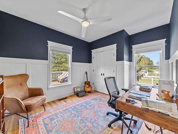 The home features a new front porch and screened back porch, beautifully updated bathrooms, bedrooms, and a custom kitchen with soapstone countertops and cabinetry. Upstairs includes a spacious loft, large closet, and additional bedroom currently used for storage.