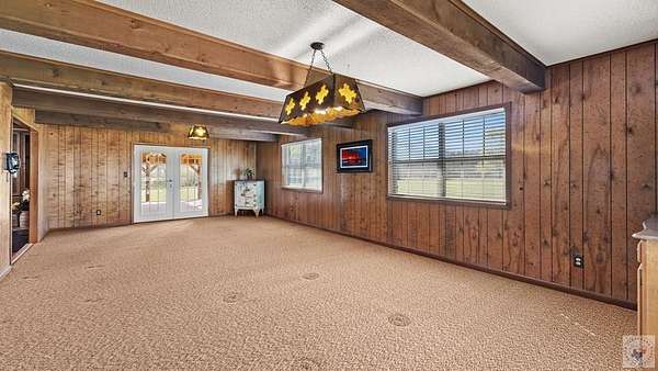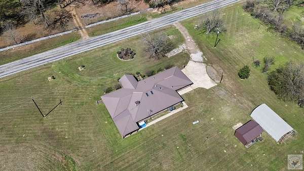 Escape the city's hustle and bustle with this charming country home, located just 10 minutes west of Texarkana. Nestled in a peaceful setting, this property offers the space and freedom to make it your own-whether you dream of adding a flagpole, building a workshop, or simply enjoying the serenity. This custom-built home is thoughtfully designed with numerous upgrades. Its spacious layout is perfect for a large family or could even serve as a business location, offering a tranquil environment for working from home. Modern conveniences abound, including a newer tankless water heater, two recently installed HVAC units, and a beautifully updated kitchen with granite countertops and modern appliances. The entryway features a large porte-cochre, the ideal spot for savoring evening sunsets, while a convenient circular driveway provides ample parking for gatherings. Inside, you'll find three dedicated bedrooms, plus a versatile fourth room with a closet near the laundry and third bathroom. Entertainment is a breeze in the dedicated game room, perfect for football marathons or a game of billiards. A former music room near the front of the house now serves as an excellent office, conveniently located for quick snack breaks. At the heart of the home, a stunning slate stone fireplace creates a commanding focal point in the family room. Beyond the main house, the property includes a large Quonset hut suitable for RV storage and a separate shop for tools and equipment. The 800-square-foot garage features a spacious two-car door, with room to add another one car door for even easier access to your vehicles and gear. Additionally, there are two Propane Tanks for convenience. Check out the RV 50 AMP hook up we have along with a cover for that 5th Wheel or Motor Home great benefit for those owning RV's to keep them ready to roll. Offering endless possibilities for living, working, and entertaining, this peaceful country home is an opportunity not to be missed.