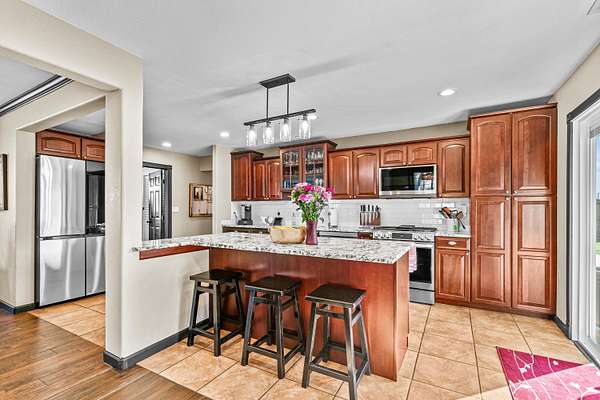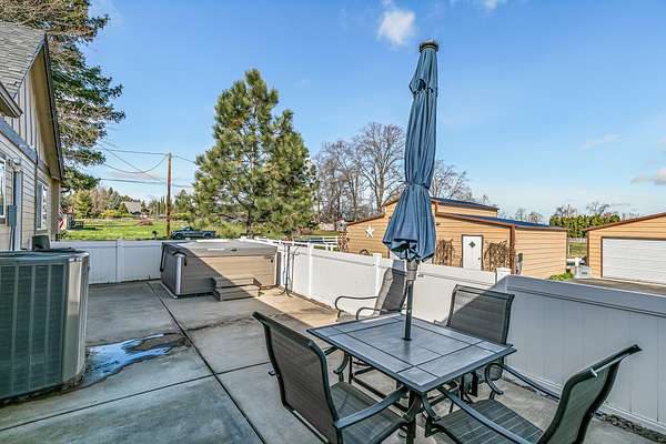 Single level country property just minutes to town yet tucked away in a peaceful setting. Perfect 2-Family set up/or mother-in-law suite w/private attached living area featuring living room, bedroom, bathroom & separate entrance. Beautiful flat usable land fenced & cross fenced with irrigation rights & a strong producing well but also connected to city sewer. Ideal horse property with barn, stalls, and tack area. Extensive updates throughout including remodeled kitchen w/granite counters, high end SS appliances, updated bathrooms, crown molding, laminate & tile flooring, vinyl windows, more. Spacious living room w/gas fireplace. Includes insulated 800 sq ft shop with heat/air + additional 2 car garage & large barn. Beautiful landscaping, sprinkler & drip systems & extended patio. Huge back area is fully fenced plus much more to list them all! On demand hot water, custom cabinets, large island, gas range, tile shower, clawfoot tub, butcher block laundry, custom paint, new fixtures.