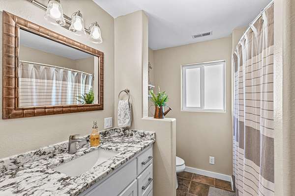 - Ceiling Fan(s), Double Vanity, Fiberglass Stall Shower, Granite Counters, In-Law Floorplan, Kitchen Island, Open Floorplan, Pantry, Shower/Tub Combo, Smart Light(s), Tile Counters, Tile Shower, Walk-In Closet(s), Wired For Sound