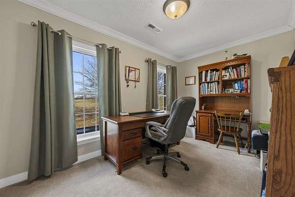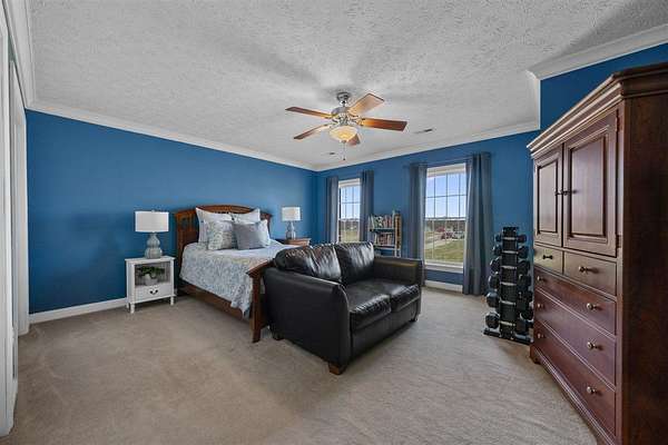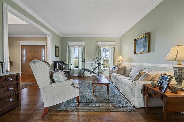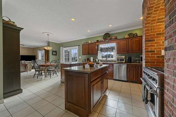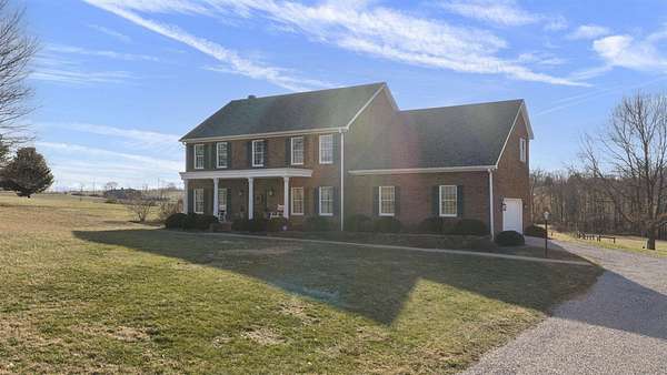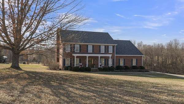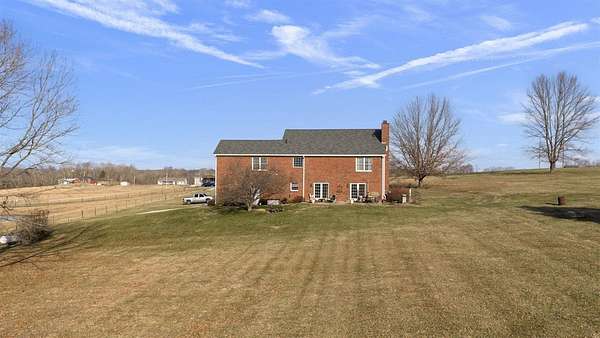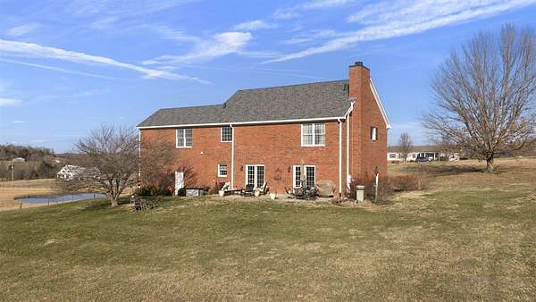 Set on 13.85 picturesque acres, this custom one-owner brick Colonial home offers just under 3,000 square feet of timeless design. Inside, the home offers classic spaces including a formal dining room and living room, and a warm and inviting family room with a gas/wood-burning fireplace--perfect for gatherings or quiet evenings at home. The open floor plan flows in to the beautiful kitchen featuring beautiful brick accents, a gas range, an abundance of cabinets, granite countertops, and a generous island. Upstairs, you'll enjoy three generously sized bedrooms include a spacious primary suite featuring two walk-in closets, a sitting area, and a spa-like bath with a beautifully tiled shower and separate soaking tub. A study/office with a closet could be a 4th bedroom. The 1,280-square-foot basement offers abundant storage, serves as an excellent storm shelter, and provides outstanding potential to be finished into additional living space. The beautifully landscaped property is mostly fenced and features a large, serene pond and a private shooting range, creating an exceptional blend of natural beauty and recreational opportunity. With a brand new roof and a geothermal HVAC system, you can move in with peace of mind. With expansive open land, peaceful water views, and room to grow, this remarkable property offers the perfect balance of classic elegance and country living--an exceptional opportunity rarely found