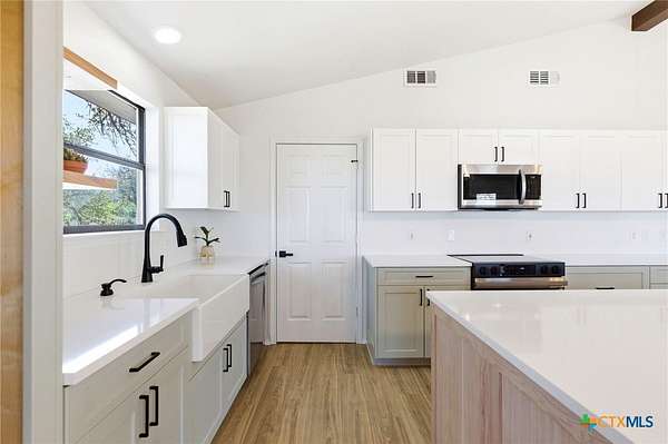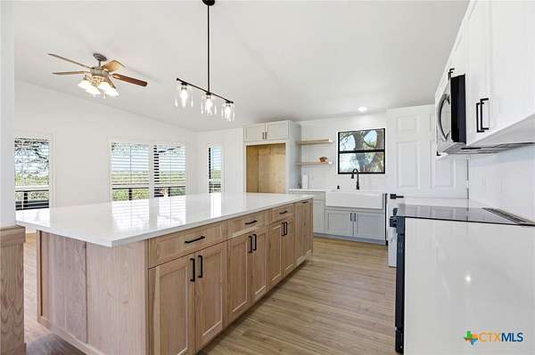 Ridgetop Retreat Overlooking Canyon Lake. Welcome to easy Hill Country lake living from this scenic ridgetop retreat overlooking Canyon Lake. Set on 4.38 acres, this beautifully remodeled 3-bedroom, 2-bath home offers privacy, space, and sweeping panoramic views across the surrounding hills. Recently remodeled inside and out, the 1,632 sq ft home blends modern comfort with relaxed lake life style. Large windows and outdoor living spaces capture the cool Hill Country breezes and stunning sunsets that make this area so special. Step outside onto the spacious wood deck-perfect for morning coffee, evening gatherings, or simply taking in the wide-open views. The fully fenced acreage provides room to spread out and enjoy the outdoors. Additional features include a private well with dedicated pump house, storage shed, and a concrete pad ideal for parking an RV, boat, or utility vehicle-perfect for enjoying everything Canyon Lake has to offer. Whether you're looking for a full-time home, Hill Country getaway, or a peaceful retreat with room to roam, this ridgetop property delivers the views, privacy, and lifestyle that make Canyon Lake living so desirable.