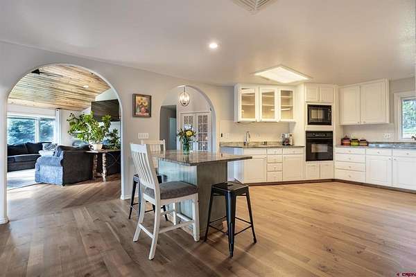 Greta Gibb, Paonia Realty LLC, C: 970-270-3311, greta@paoniarealty.com, www.crenmls.com: Welcome to your own private Eden with panoramic mountain views on Pitkin Mesa. This recently renovated 4,200+ square foot home offers 4 bedrooms and 4 bathrooms, nestled on 2.5 acres of lush landscape with mature trees and abundant fruit. The setting is nothing short of breathtaking--every window frames a unique view worthy of a painting.Thoughtful upgrades blend quality and comfort throughout the main level, including quarter-sawn red oak hardwood floors, tile, carpet, granite and quartz countertops, updated cabinets, new appliances, and modern bathroom fixtures. Vaulted ceilings finished in pine beetle blue tongue-and-groove add warmth and character throughout the home.The master suite is a true retreat, featuring its own private deck, a generous walk-in closet, and a luxurious bathroom complete with a soaking tub.A spacious garden-level apartment with a separate entrance offers flexibility for guests, rentals, or multi-generational living. Comfort is ensured year-round with two evaporative coolers, radiant heat, and a cozy wood-burning fireplace. The fresh Pitkin Mesa Domestic Water comes from springs on the Grand Mesa.For all your storage and hobby needs, the oversized two-car garage is complemented by a large storage room and a separate shed with a full foundation and electricity--ideal for a workshop or additional storage.Enjoy stunning views from the partially covered deck with additional awnings if desired along with its own ceiling fan for warm summer days. The property is irrigated by a Rainbird sprinkler system using ditch water, keeping the landscape thriving with ease.A decorative high fence encircles the entire property, paired with an automatic solar gate for security and convenience. The resident dogs love romping safely throughout the property. Just minutes from town yet perfectly tucked away for peace and privacy, this pristine, park-like property offers the best of both worlds. Wake up each day in gratitude, surrounded by beauty and serenity.*One bedroom is non-conforming.