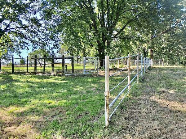 It might not be spring yet but these pictures from last summer will let you dream. This charming hobby farm offers a wonderful setup for those with livestock and a love for the outdoors. The property includes pipe corrals, barn with six horse stalls and 2 26' feet deep parking stalls and a convenient three-car garage, all situated around a comfortable 2284 sq ft ranch-style home. The pasture is enclosed with easy-to-maintain pipe corral fencing, and both the house and garage feature durable vinyl siding. Inside, the home boasts two large bedrooms and two bathrooms, along with three distinct living spaces. You'll be greeted by a spacious living room upon entering. The main bathroom is notably large, featuring both a walk-in shower and a separate bathtub. The country kitchen is a highlight, complete with an island bar, a cozy fireplace, and a dining area with ample additional cabinet storage. A practical mudroom with laundry connections also includes a convenient 3/4 shower. For added value, the freezer, washer, dryer, kitchen range, dishwasher, and refrigerator are all included at the asking price. The southeast living space offers flexibility. Currently featuring 3 sets of sliding glass doors, it could easily function as a three-season porch. Alternatively, with some modifications such as adding a closet and a mini-split HVAC unit, it could serve as a third bedroom. Pull down stairs to the finished attic room has been used as a bedroom in the past. The yard and fenced courtyard are a gardener's delight, filled with a variety of perennials including crepe myrtles, lilac bushes, irises, an ornamental peach tree, cooking herbs, sunflowers, and much more. A screened-in patio provides access to a basement storm shelter, which also serves as a convenient area for cleaning out the fireplace hearth. The house is positioned at the northeast corner of the property, leaving a significant amount of usable land. A unique feature is a "potting shed" with an attached outdoor toilet for convenience while working outside. 2 x 250 gallon rainwater collection barrels at the barn allows for sustainable watering of plants. Additionally, the seller has indicated the presence of a capped water well in the southwest part of the pasture that has not been utilized. Please note that the 220 electrical wiring in the garage will need to be connected to the breaker box.Seller says the very high steel antenna can receive 20 channel for Tulsa.