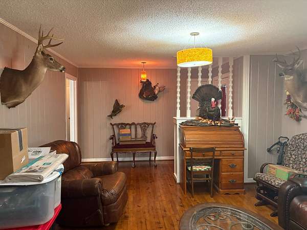 Welcome to your private slice of country living! This well-maintained 3 bedroom, 3 bath home sits on approximately 3 beautiful acres, offering the perfect blend of comfort, space, and functionality. Step inside to find a spacious layout with plenty of natural light, a cozy living area, and an updated kitchen designed for both everyday living and entertaining. Each bedroom offers generous space and with 3 full bathrooms, theres room for everyone to spread out comfortably. There's beautiful natural hardwood floors though out that have been refinished. The HVAC system was updated in 2022. The fireplace is a gas insert but it can be removed to use the original wood burning fireplace. Outside is where this property truly shines. The impressive 30x40 shop is insulated with a loft and a separate office inside. It has power and owner has built in cabinets and drawers along the side and back walls for storage. It is idea for hobbies, storage, home business, or workshop place. In addition, there are two separate storage buildings with a greenhouse attached to one of them. Enjoy the peaceful surroundings from the sun room, sitting area, or the front porch. The property has pecan trees, fig trees, blueberry bushes, and scuppernongs.