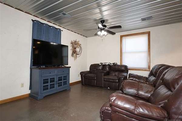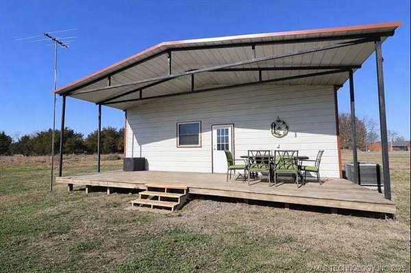 Wow! Enjoy peaceful country living with paved road access to this 3-bedroom, 1-bath home on approximately 5.3 acres. The owner has made several recent upgrades, including a new septic tank and lines to tank (2024), a new concrete patio, and new concrete floors in the barn's hay stall. The property features a 30' x 50' horse/livestock barn equipped with 110V and 220V electric, two large sliding bay doors, cattle/horse stalls, and a concrete pad for hay storage. (Barn built in 2006.) Relax on the spacious porches surrounded by mature shade trees, peach and apple trees, and enjoy year-round privacy with cedar screening. The land is fully fenced with cross-fencing, making it ideal for a small farm or ranch setup. Wire cross fencing perfect to keep your small pups secure. Two water hydrants provide convenient access for livestock or gardening. Additional features include a 2-bay carport and a 14.7' x 14.7' shed with electric, perfect for a she-shed, workshop, or storage. Conveniently located just 15 minutes to Bartlesville, 20 minutes to Collinsville or Skiatook, and 30 minutes to Tulsa.