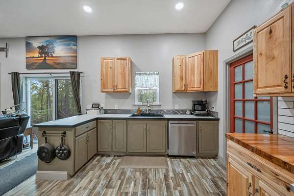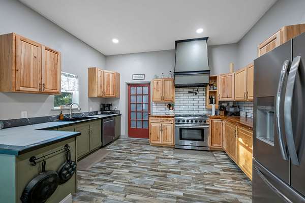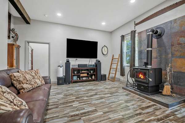 Completed in 2023, the main residence spans 2,250 square feet with 3 bedrooms, 2 baths, an office, and a bonus room. Built with 2x6 exterior walls and CAT6 wiring to most rooms, it delivers superior craftsmanship and energy efficiency. Wide hallways and doorways provide ADA accessibility, while a butler's pantry and owned solar system with grid tie allow for elegant, sustainable living. Here, off-grid capability meets everyday comfort.