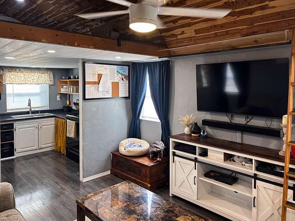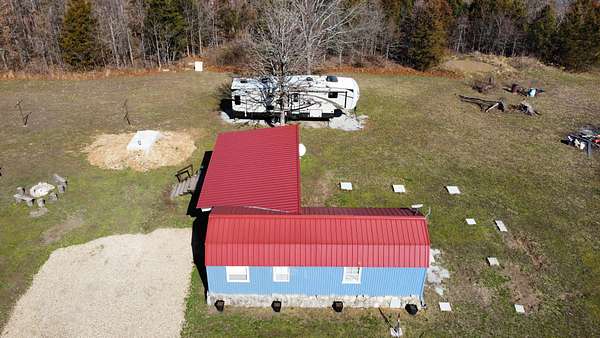 JUST FOR YOU we have a 13.49 acre parcel of land just off the Glade Top Trail. It has a neat 1 bed, 1 bath 672 sq. ft. tiny home with 2 loft areas (250 extra sq. ft.) that are used for sleeping. The home has a metal roof and the layout is well thought out with all areas serving a purpose.Outside, you find a chicken coop with a large fenced-in pen, an animal shelter, an in-ground storm shelter, a firepit, a large garden area with an herb garden (Rosemary, Thyme, Basil, Lavender, Lemon Balm, and Oregano), numerous fruit trees, a private well, lagoon, long range views, RV parking, and lots of PRIVACY. The one thing it does not have is restrictions. This unique property has been surveyed giving you ownership to 13.49 acres which you can call your own. It also joins the Mark Twain National Forest on 2 sides giving you access to thousands and thousands of additional acres for your enjoyment at no cost!The RV can be purchased separately. Ask for details.