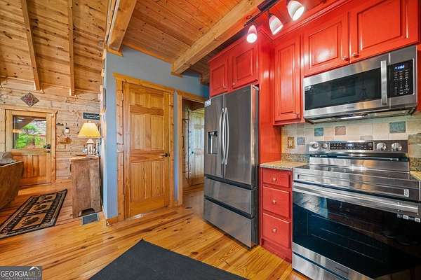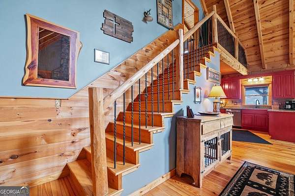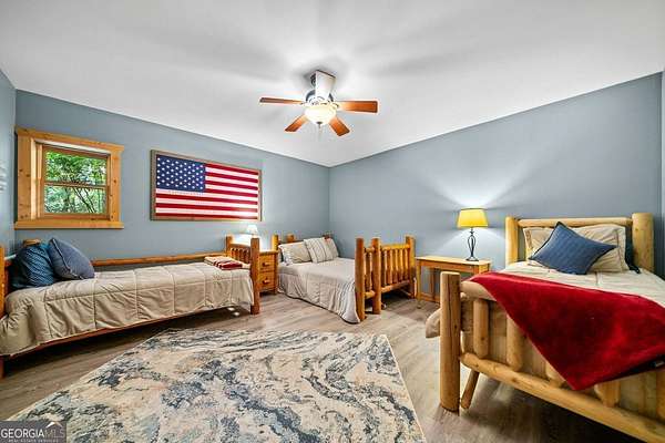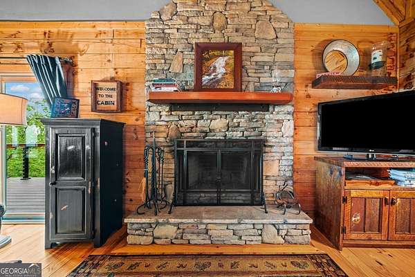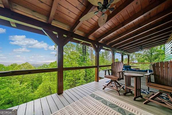 Welcome to MORVIEW, a fully furnished, meticulously maintained 3-bedroom, 3-bath log cabin offering year-round, unobstructed mountain views from one of the most desirable lots in Trahlyta Estates. Whether you're seeking a peaceful second home, a private mountain getaway, or a high-performing short-term rental, this property checks every box. Located in the scenic heart of Dahlonega, just minutes from North Georgia's top-rated wineries and outdoor attractions, this home strikes the perfect balance between rustic charm and modern comfort. The spacious main-level Owners suite opens to a screened porch with low-maintenance Trex decking, providing the ideal spot for morning coffee or evening relaxation while taking in the sunrise over the mountains. Enjoy over 1,100 square feet of brand-new wraparound decking-60% Trex on the upper level and 40% pressure-treated wood on the lower-designed to enhance outdoor living and take full advantage of the sweeping eastern mountain views. On the lower level, unwind in the private hot tub area, complete with an outdoor shower, offering a spa-like retreat right at home. The updated kitchen features granite countertops, stainless steel appliances, and custom-painted cabinetry, while all three bathrooms showcase wood cabinetry and granite finishes. The main-level suite boasts stunning views, abundant natural light, and an oversized walk-in shower. Offered with furnishings as seen at showing, including the hot tub, MORVIEW is truly move-in ready-or ready to start generating rental income from day one. Short-term rentals are permitted in this quiet, well-maintained community, providing flexibility and potential ROI. Recently re-stained and carefully cared for, this property is more than just a mountain home-it's a lifestyle investment. Don't miss your chance to own a rare mountain retreat in one of Dahlonega's most sought-after neighborhoods, just a short drive north of downtown. Opportunity is Knocking!