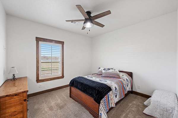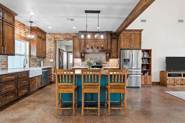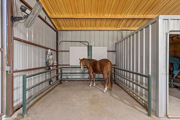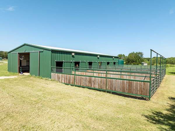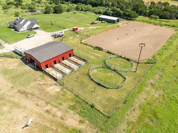 A rare opportunity to acquire a fully developed, turn key equestrian estate on 14.76 fenced acres in Chilton—properties of this caliber & level of infrastructure in place, are seldom available. Just 15 minutes from town, this offering includes a 2,962 SF custom ranch style home, a 3,000 SF red barn with apartment, and a 2,808 SF green barn, totaling 8,770 SF of improvements designed for immediate use. The 5 bedroom, 3.5 bath residence features an open layout, vaulted ceilings, and custom louvered shutters, creating a warm, functional living space that complements the facility. Designed for seamless indoor-outdoor flow, the home supports both daily ranch life and hosting with ease. For equestrian use, the property is fully outfitted and ready to operate from day one. Two barns, six pasturettes, and a 300' x 150' outdoor riding arena create a complete setup for training, boarding, or private use. The green barn (built in 2023) includes six 12' x 12' stalls with lighting, water, fans, and stall-grid flooring, along with a tack room, hay storage, dual 3,000-gallon cisterns, fly spray system, wash bay with on-demand hot water, frost-free hydrants, and dusk-to-dawn lighting. The red barn offers four stalls with extended runs, water access, fans, tack room, fly system, WiFi, and plumbing for hot water, plus a 400 SF apartment with full bath and kitchen; ideal for staff, guests, or on-site management. The acreage is intelligently divided into six pasturettes with shelters and automatic waterers, with a 0.5 acre section connecting to a 4.57 acre pasture. This larger tract offers expansion, well suited for a covered arena, training program, or therapeutic equine use, subject to buyer vision and local considerations. Turn-key equestrian properties with this level of finish, flexibility, and immediate usability are increasingly difficult to find. This is a property that must be experienced in person to fully appreciate its capability and potential.