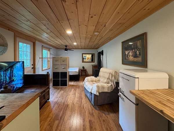 Back on Market -- At no fault of the sellers! Assumable VA Loan 3% Interest! Perfectly positioned in the heart of the Upper Valley, this rare find offers a unique combination of privacy, convenience, and year-round recreation with Mascoma Lake steps away. Enjoy four seasons of lakeside living without the premium lakefront taxes! Nestled discreetly off the road, surrounded by mature trees, and set on a beautiful private 2-acre lot, this well-maintained two-story ranch offers 2,800 sqft of living space, including a fully equipped detached cottage (ideal for rental income-$2K/mo-or multi-generational living), and private beach access just a stroll away. The primary residence's upper level features a spacious kitchen/dining area with scenic views of your private woods, a cozy living room with a wood-burning fireplace, two bedrooms, a full bath, and a balcony with stunning westerly sunset views over the lake. The lower walkout level has three finished rooms, a half bath, and a flexible workshop with ample storage. The detached cottage serves as a fully functional studio or in-law suite with a washer, cooktop, AC, full bath, parking, and a deck with lovely lake views. Additional features include a cute chicken coop w/ custom-built run, two storage sheds, perennial gardens, a stone fire pit, and ample open yard space. Truly a unique property offering serene country living with easy access to outdoor recreation, minutes from DHMC, Hanover, Lebanon. Seller is an NH Real Estate Agent.