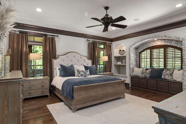 Welcome to 399 The Lady of the Lake--a spacious and well-built home designed for comfort, entertaining, and lasting quality. Set on a solid poured concrete foundation with brick construction, this property offers low-maintenance living with high-end features throughout. The energy-efficient geothermal heating and cooling system adds modern convenience, while the back-filled pool area comes with plans already in place--ready for you to complete when the time is right. Gather your own "knights of the round table" around multiple fireplaces or on the large, multi-level covered patios--perfect for memorable meals, conversation, and connection. The expansive lower-level rec room offers endless possibilities, with access to the patio and future pool area. A laundry chute off the back stairwell is actually an elevator shaft for added convenience. The chef's kitchen features Subzero and Wolf appliances, a pot filler, prep islands, hidden pantry, and abundant storage--ideal for entertaining or everyday living. A 1,200 sq ft guest or in-law apartment includes a full kitchen, laundry, and ample storage, providing flexible space for visitors or extended family. This home is a perfect blend of function and character, with room for modern living and timeless gatherings. Check out the video too.