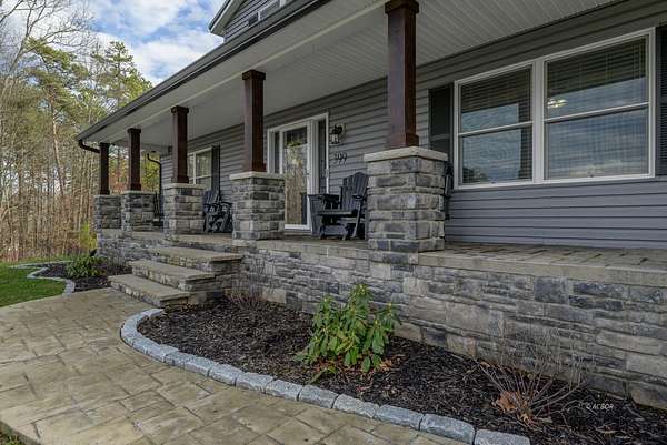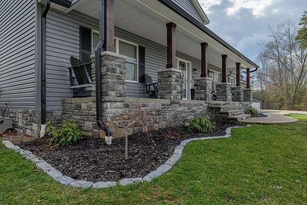 Ideally located 5 mins from schools, 10 mins from Holzer Gallipolis/US-35, and 30 mins to NUCOR WV. This estate offers the perfect blend of convenience and seclusion, sitting directly across from the 80+ acre ODNR Samuels Wildlife Area. Nestled on 4+ acres of timber, the 4BR/3BA home is a private sanctuary. The open interior features a chef's kitchen with granite, stainless appliances, and a large island. The main floor boasts fresh paint, an owner's suite, plus a secondary bedroom and bath. The 2nd floor offers a second living area, two bedrooms, and a full bath. Outside, new 2024 stonework wraps the porch, home base, and cedar columns for striking curb appeal. The backyard is a 2024 oasis with a 27' above-ground pool, gazebo, fish ponds, and fresh landscaping. Practical upgrades: 24kw Generac generator, 6" black gutters, paved drive, and 22x35 concrete patio. The insulated 24x24 garage includes a pellet stove and large door, plus a 16x12 outbuilding. The massive poured-wall basement with tall ceilings is ready for expansion. Home was stick-built to BOCA code in a controlled environment and assembled onsite.