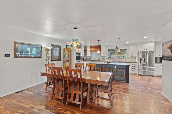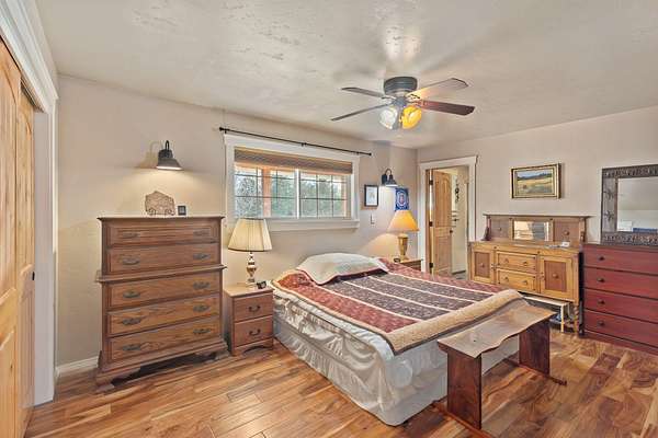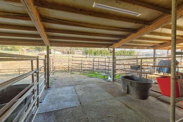 Watch your horses graze from the kitchen window! 2.75 ac. Easy country living, 7 horse stalls. Dry hay storage., irrigated pastures with a pole-barn style shelter for horses or other livestock 3 Bedroom/2 bath single-level home w/attached heated/cooled 624sf two-car garage. Large, welcoming covered front deck. Open floor plan, Acacia wood floor w/living room anchored by a wood-burning insert/custom stamped concrete hearth & timber mantle. Spacious dining area flows into a gourmet kitchen, double oven w/concrete countertops, butcher block island w/seating, walk-in pantry, built-in desk. Entire property is chain-link fenced, irrigated (GPID) Circular drive services outbuildings-. Detached 3 car garage has 220. Generous parking for RVs or trailers Two RV sewer dumps & area for riding pen, supports the equestrian lifestyle. Just bring your toothbrush & horses & start living the Jerome Prairie lifestyle!