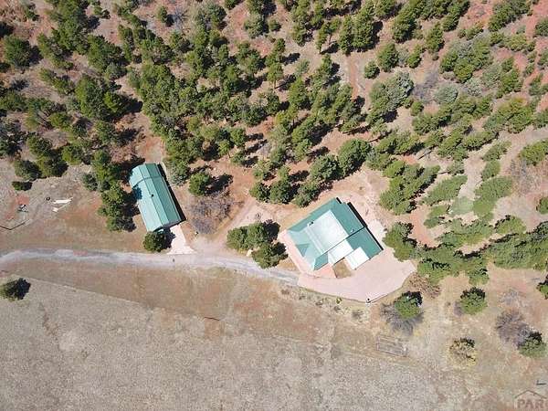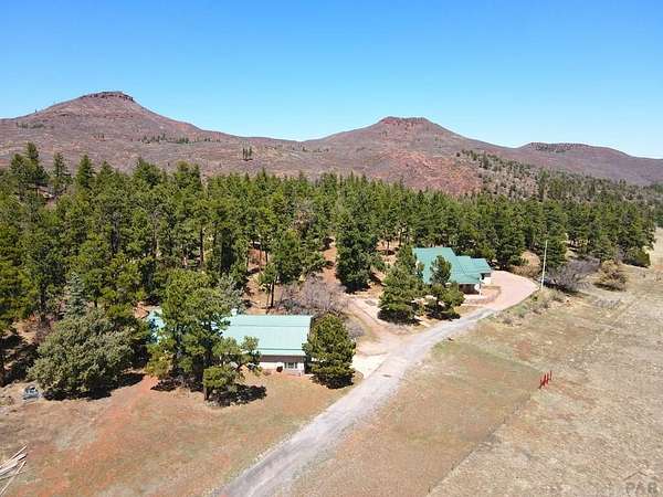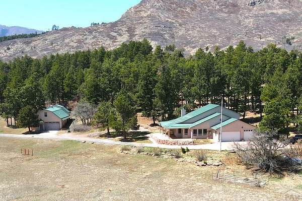Private and picturesque 57-acre mountain property located just outside the town of Beulah, CO. The main home features 3 bedrooms, 2 full bathrooms, open-concept living, with abundant windows allowing for natural light to fill the space, vaulted ceilings, and the warmth of a wood-burning fireplace in winter months. You will love the spacious kitchen with maple cabinets, granite countertops and black appliances. Enjoy peaceful mountain views from the large, covered patio. Attached oversized 3-car garage provides ample storage and workspace. A 30x60 outbuilding includes a separate 2-bedroom guest suite with a kitchenette and bath-ideal for multi-generational living, guests, or rental potential. The remaining structure has a 2 car garage door and is perfect for workshop space, equipment storage, or recreational use. The property boarders public land offering total privacy, abundant wildlife, and endless opportunities for outdoor recreation-hiking, riding, and exploring your own land and beyond. The entire property is completely fenced, including a small corral and loafing shed ready for horses and agricultural use. Private domestic well, septic, and high-speed internet available. With a paved road to the property, it is ideal for year-round living, vacation home, or mountain getaway. Don't miss this rare opportunity to own a true Colorado mountain sanctuary.