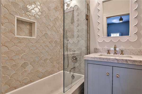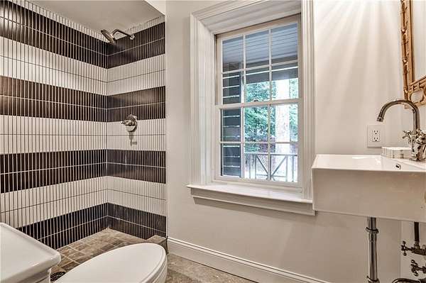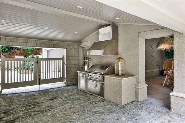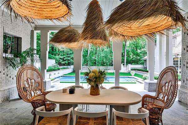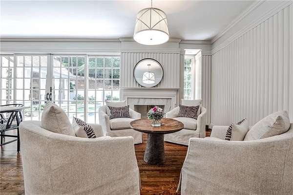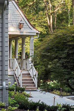 Behind private gates on over two wooded acres in Buckhead's prestigious Paces neighborhood, this luxury gated estate was originally designed by historic architect Francis Palmer Smith and has been completely rebuilt for modern luxury living. Shingle Style architecture meets Southern Colonial elegance in a layout designed for both entertaining and everyday comfort. Features include a French-inspired chef's kitchen with LaCanche range, limestone fireplace, fluted living room opening to the walk-out pool and cabana, and a primary wing with spectacular closets and a Viola marble spa bath. Upstairs holds four ensuite bedrooms; the terrace level offers a lounge, gym with infrared sauna, guest suite, and a secret "Speak Easy" wine cellar with hidden hydraulic staircase to the family room. Minutes to Lovett, Westminster, Buckhead shopping and dining.